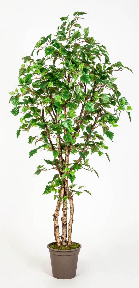 Abedul blanco artificial HINDRIKA, troncos naturales, verde, 250 cm - Fabricado en Italia