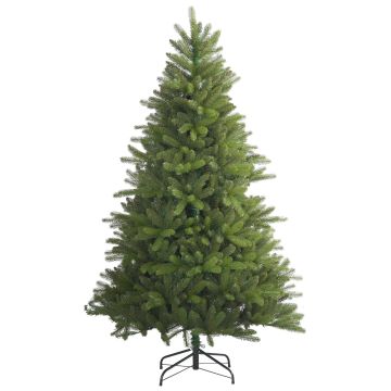 Árbol navideño/Abeto decorativo AMSTERDAM de color verde con soporte de metal y ramas de aguja de PE/PVC. El abeto falso de Navidad posee una altura de aprox. 230 cm, un diámetro de aprox. 110 cm y es ideal como decoración para el salón de casa o para restaurantes, escaparates, puestos de feria, etc.