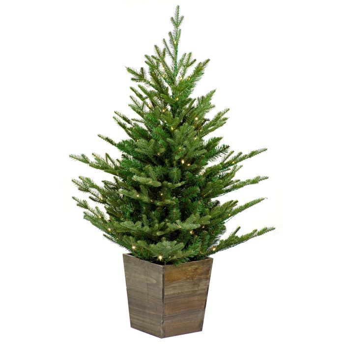 Abeto artificial CARDIFFF, maceta de madera, LEDs, 90cm, Ø75cm