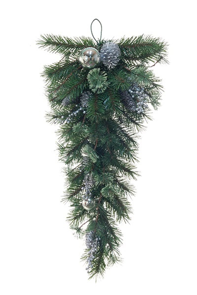 Abeto artificial CICILIA, colgante, piñas, bolas, bayas, verde-plateado, 75cm