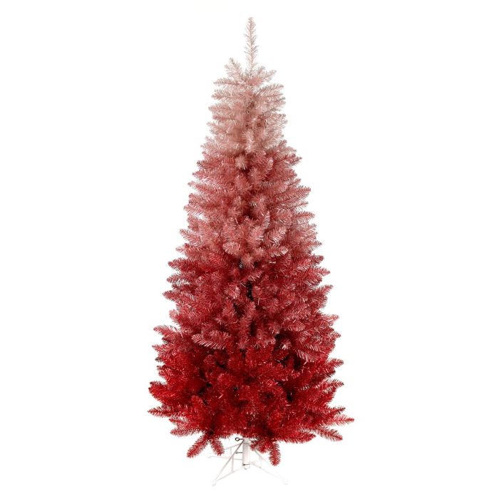 Abeto de plástico/Árbol de Navidad LAS VEGAS SPEED de color rojo con soporte de metal hecho de agujas de PVC. El árbol de Navidad falso de aprox. 210 cm de altura posee un diámetro de aprox. 90 cm y es ideal como decoración para el salón de casa o para restaurantes, escaparates, stands de ferias, etc.