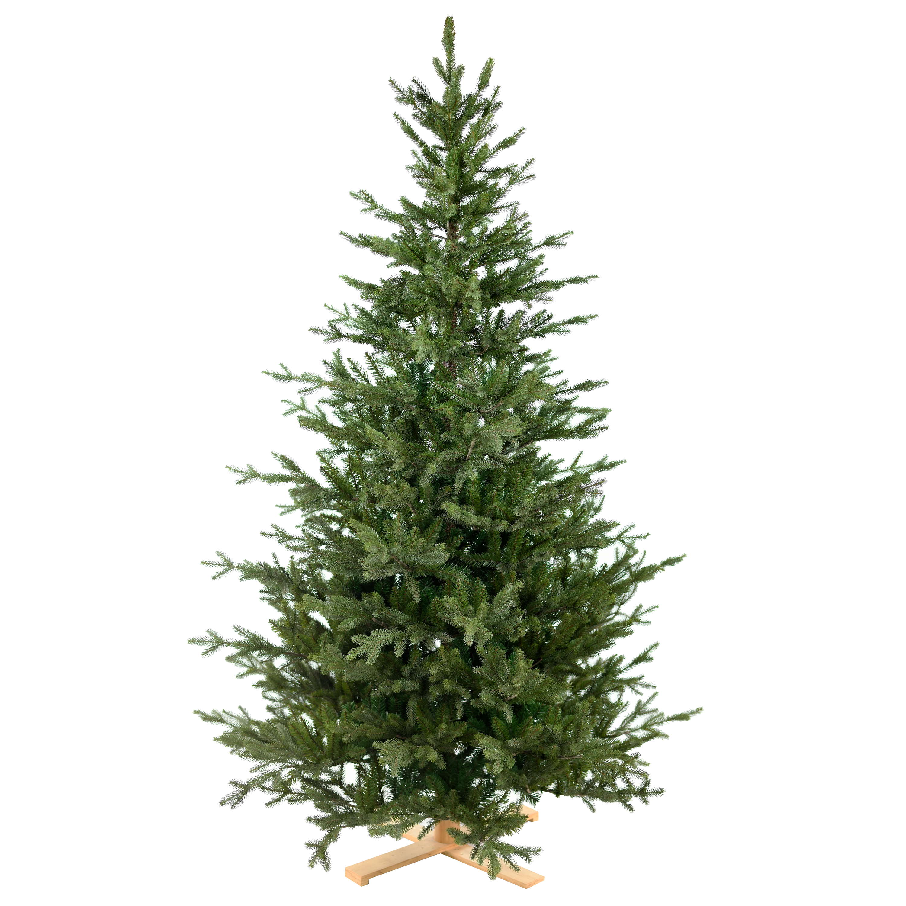 Abeto/Árbol de Navidad artificial VALLETTA de color verde con soporte de madera y ápices de PE/PVC. El árbol de Navidad de aprox. 275 cm de altura posee un diámetro de aprox. 160 cm y es adecuado como decoración para el salón del hogar o para restaurantes, escaparates, stands de exposición, etc.
