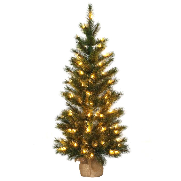 Abeto de plástico VENTURA de color verde en una bolsa de yute y elaborado con agujas de PVC. El árbol de Navidad falso de aprox. 120 cm de altura posee un diámetro de aprox. 65 cm y es ideal como decoración para el salón de casa o para restaurantes, escaparates, stands de ferias, etc.