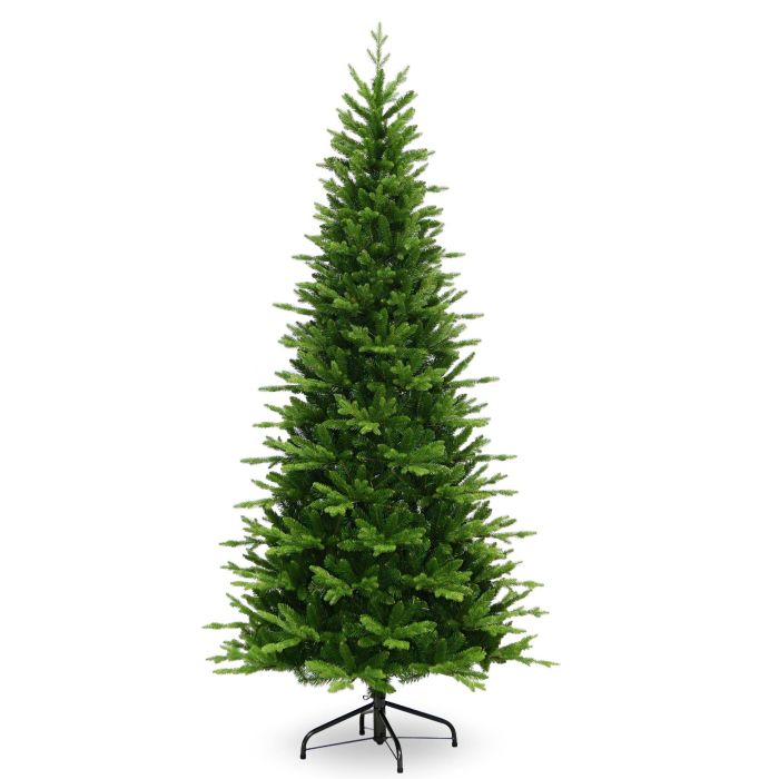Árbol de Navidad falso/Abeto navideño PRAG de color verde con soporte de metal y ramas de aguja de PE/PVC. El abeto artificial de Navidad posee una altura de aprox. 180 cm, un diámetro de aprox. 100 cm y es ideal como decoración para el salón de casa o para restaurantes, escaparates, puestos de feria, etc.