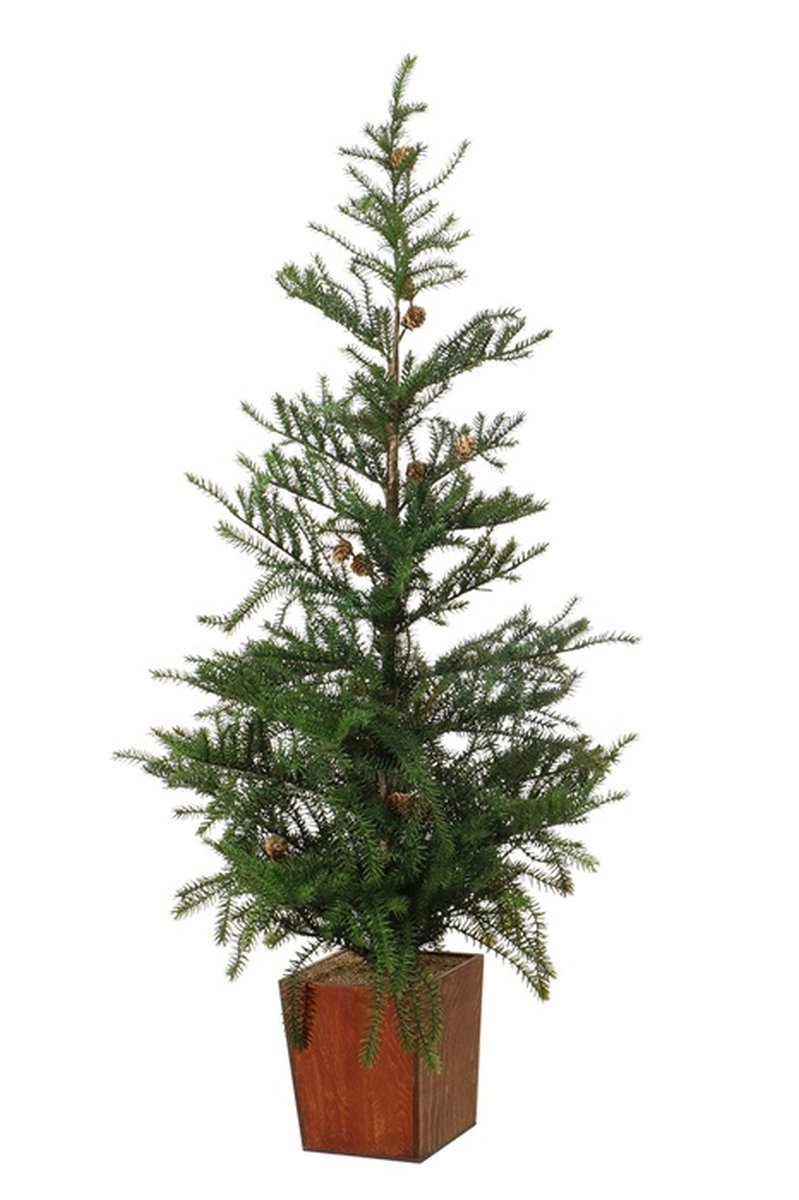 Abeto decorativo CEDARIO con piñas, en maceta de madera, 110cm