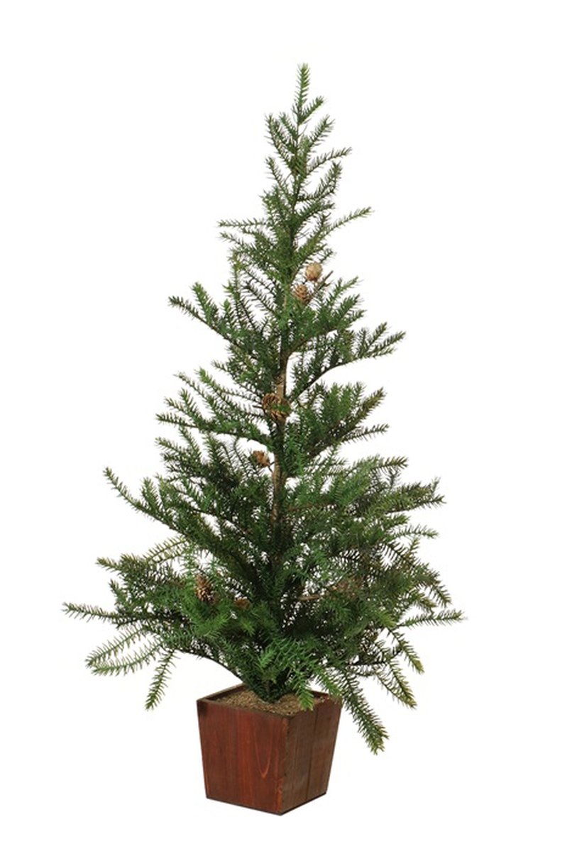 Abeto decorativo CEDARIO con piñas, en maceta de madera, 90cm