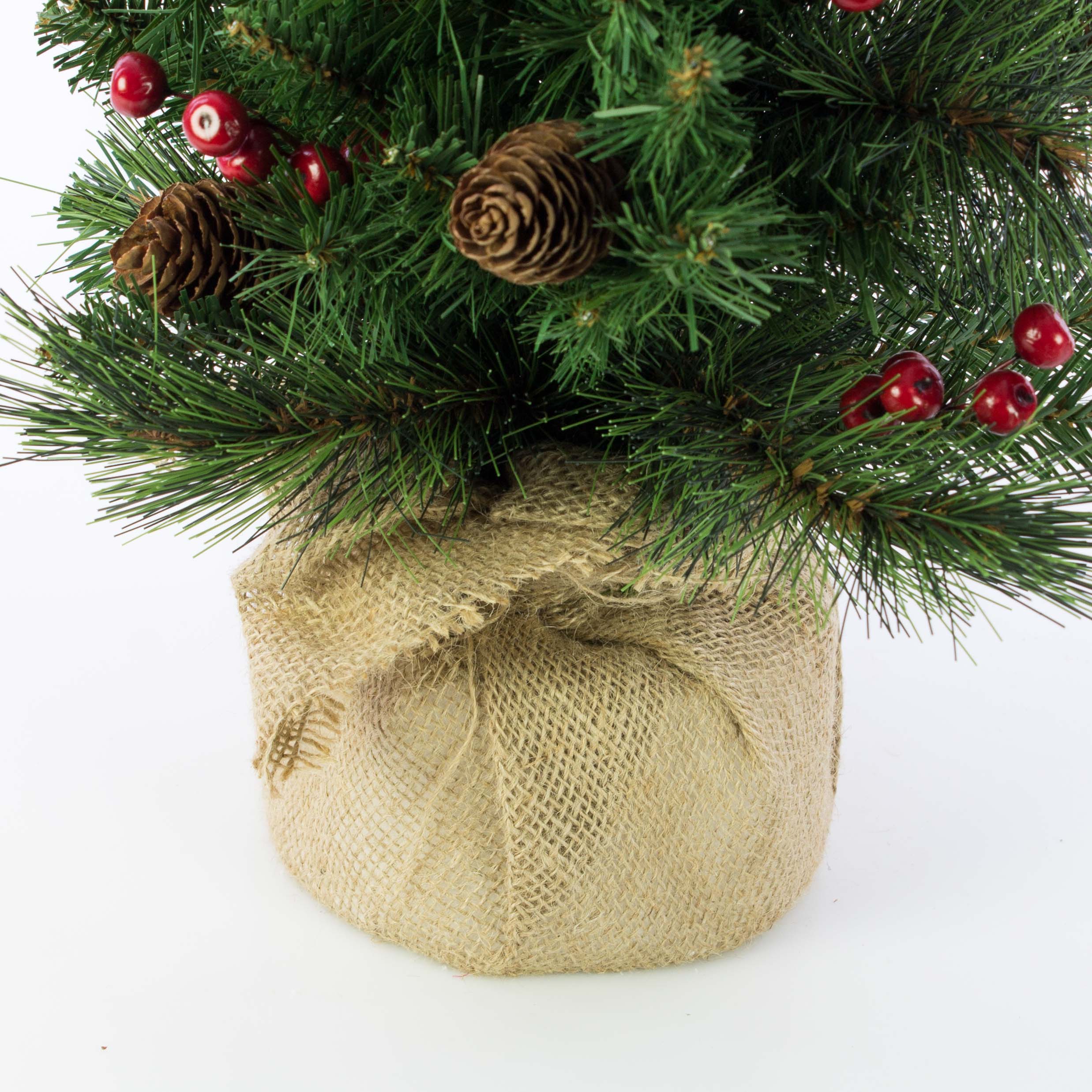 Abeto navideño artificial BUKAREST, piñas, saco yute, decorado, 60cm, Ø35cm