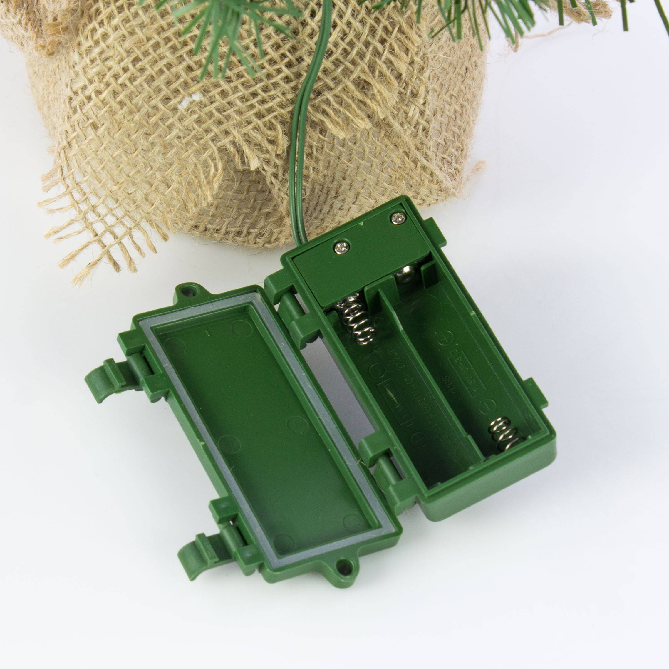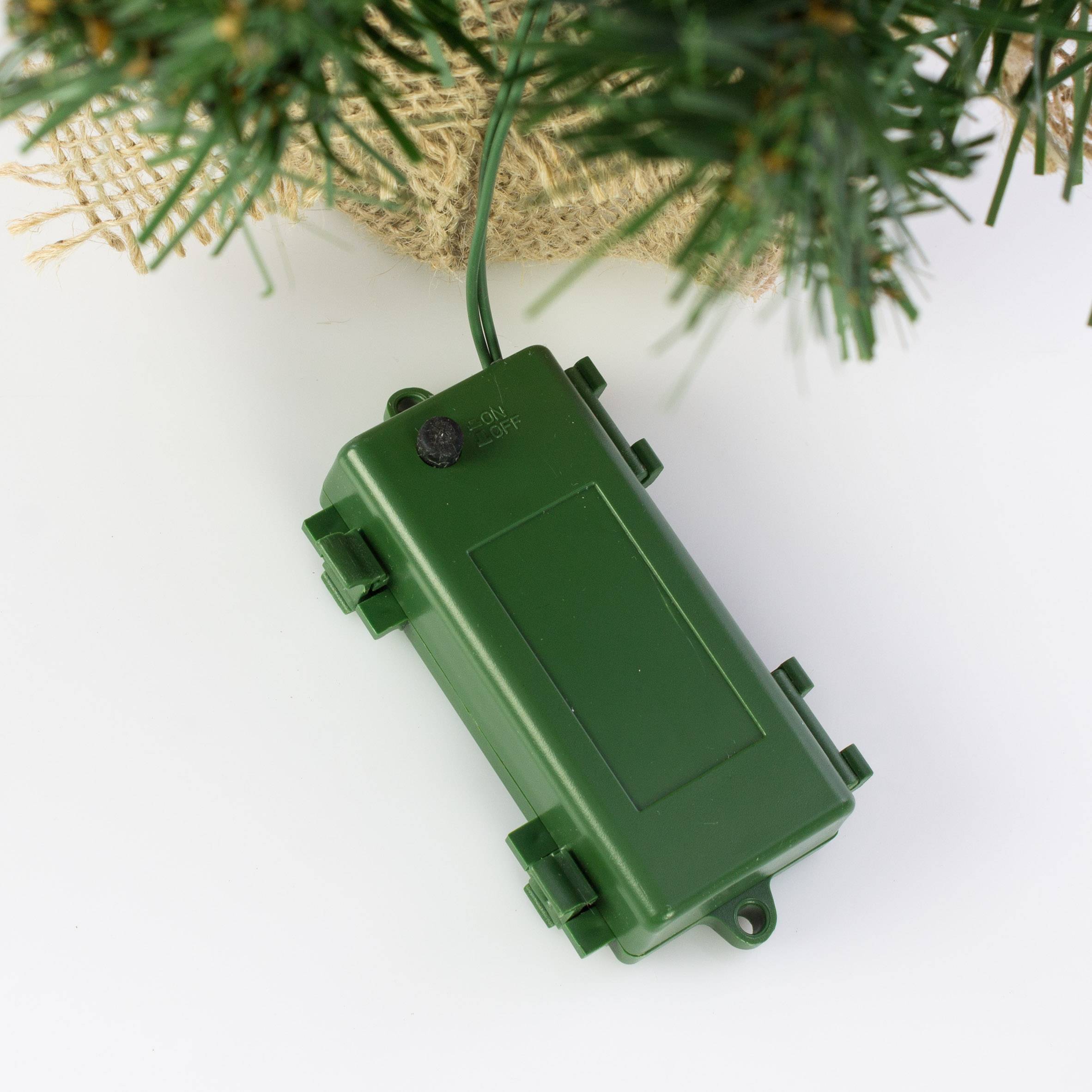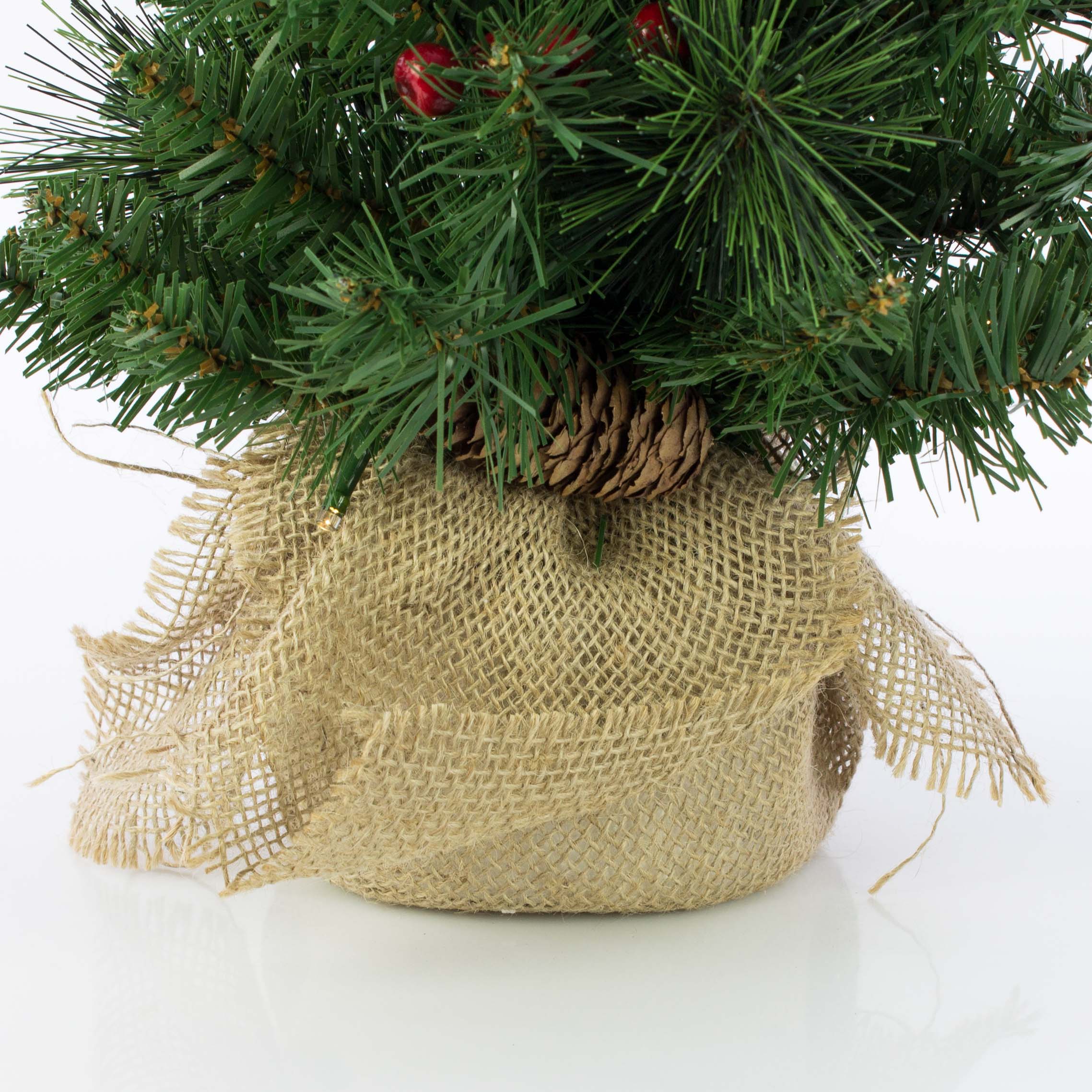 Abeto navideño artificial BUKAREST, piñas, saco yute, decorado, LEDs, 45cm, Ø25cm