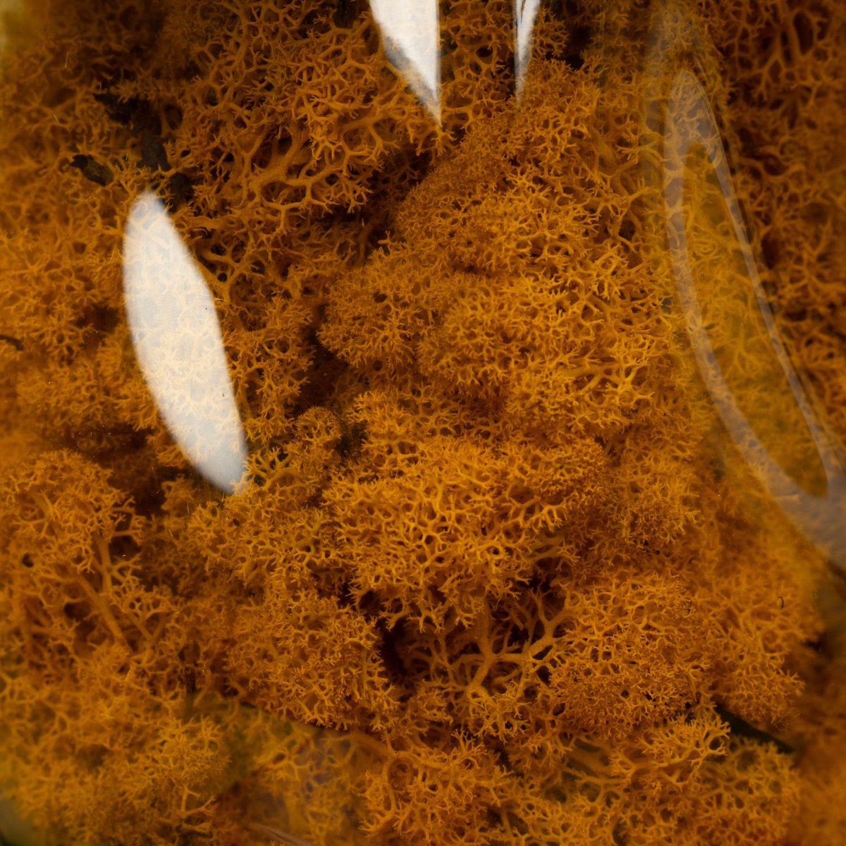 Consejo de diseño: Primero, coloca la hierba cola de zorro en el jarrón. A continuación, rellena el jarrón con el musgo natural de color naranja, de modo que el tallo ya no sea visible. El musgo también sirve de soporte para que el tallo no se caiga de lado. Por último, coloca la corona en el jarrón. Sujétala un poco para que la hierba no se doble. Muy fácil de recrear!