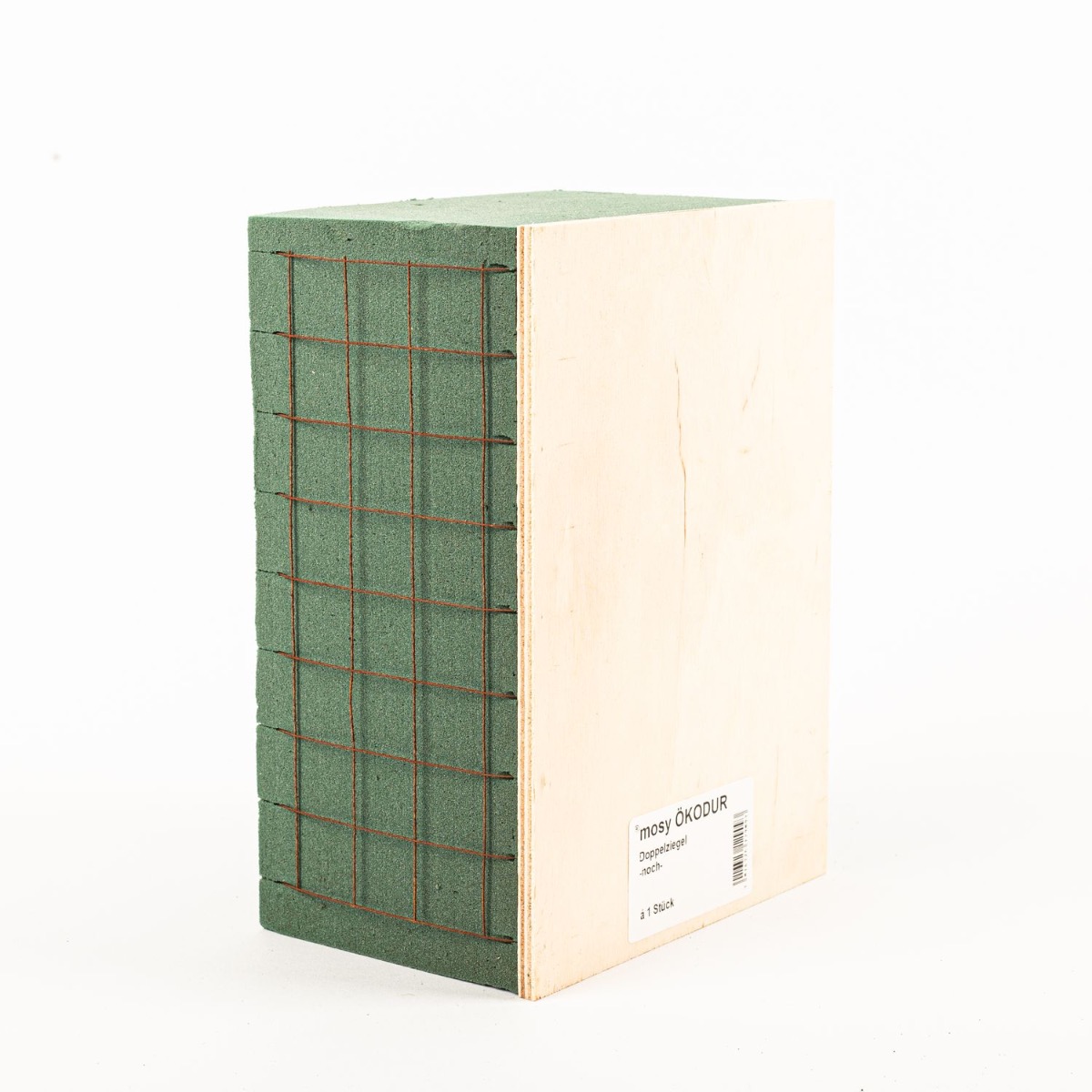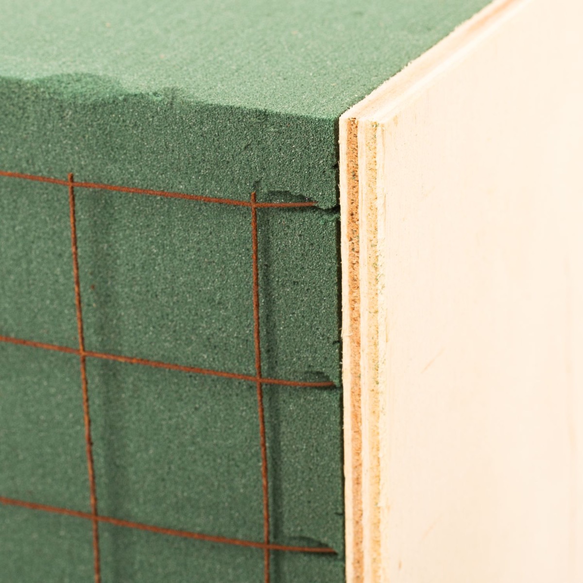 Adorno funerario Ökodur Espuma floral VESDO con rejilla metálica, borde para agarrar, base de madera natural, verde, 23 x 15,5 x 11 cm