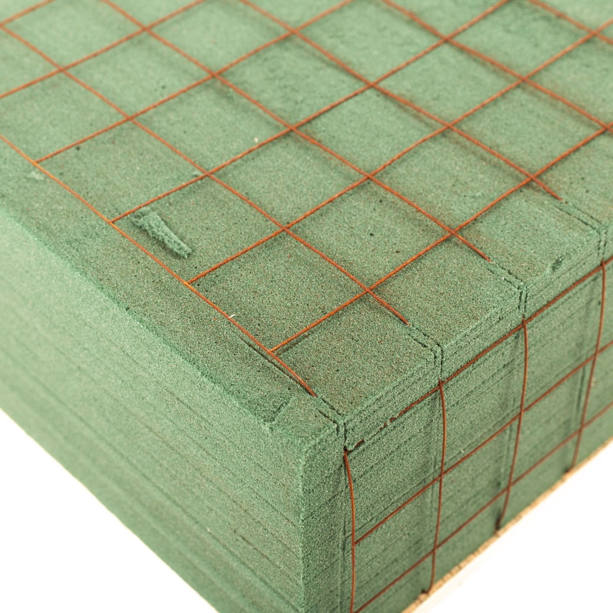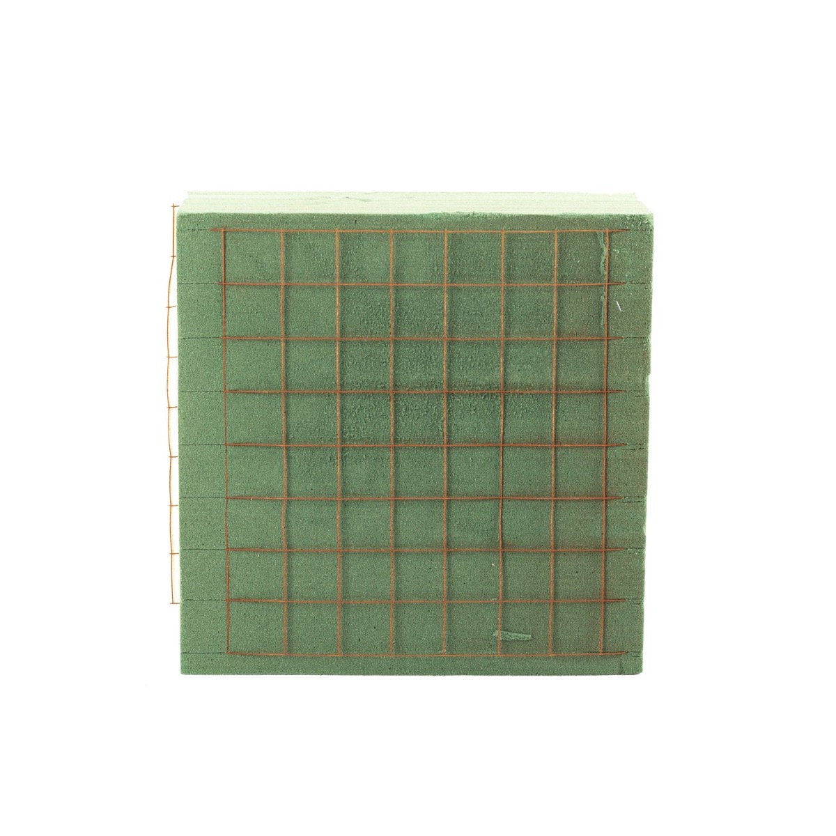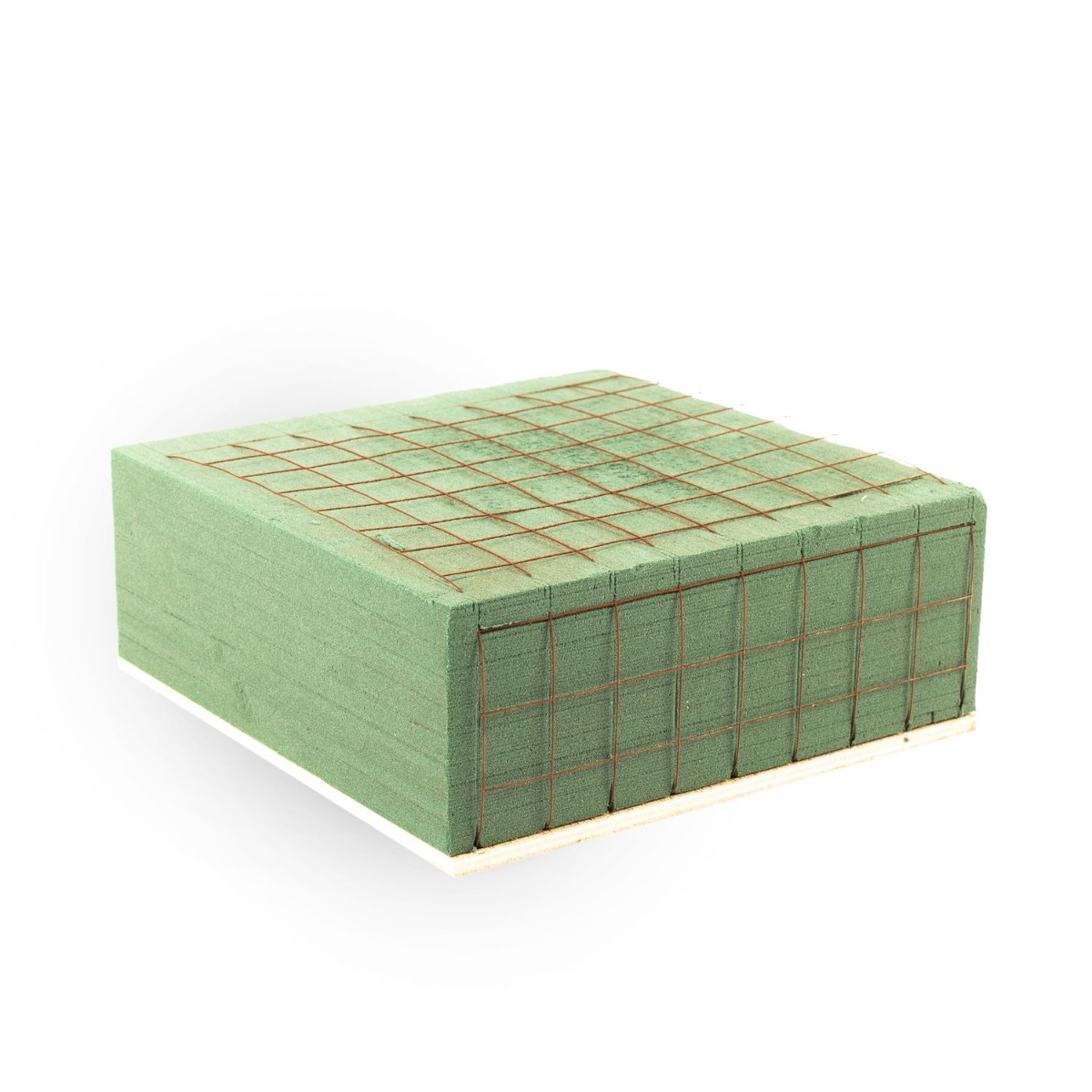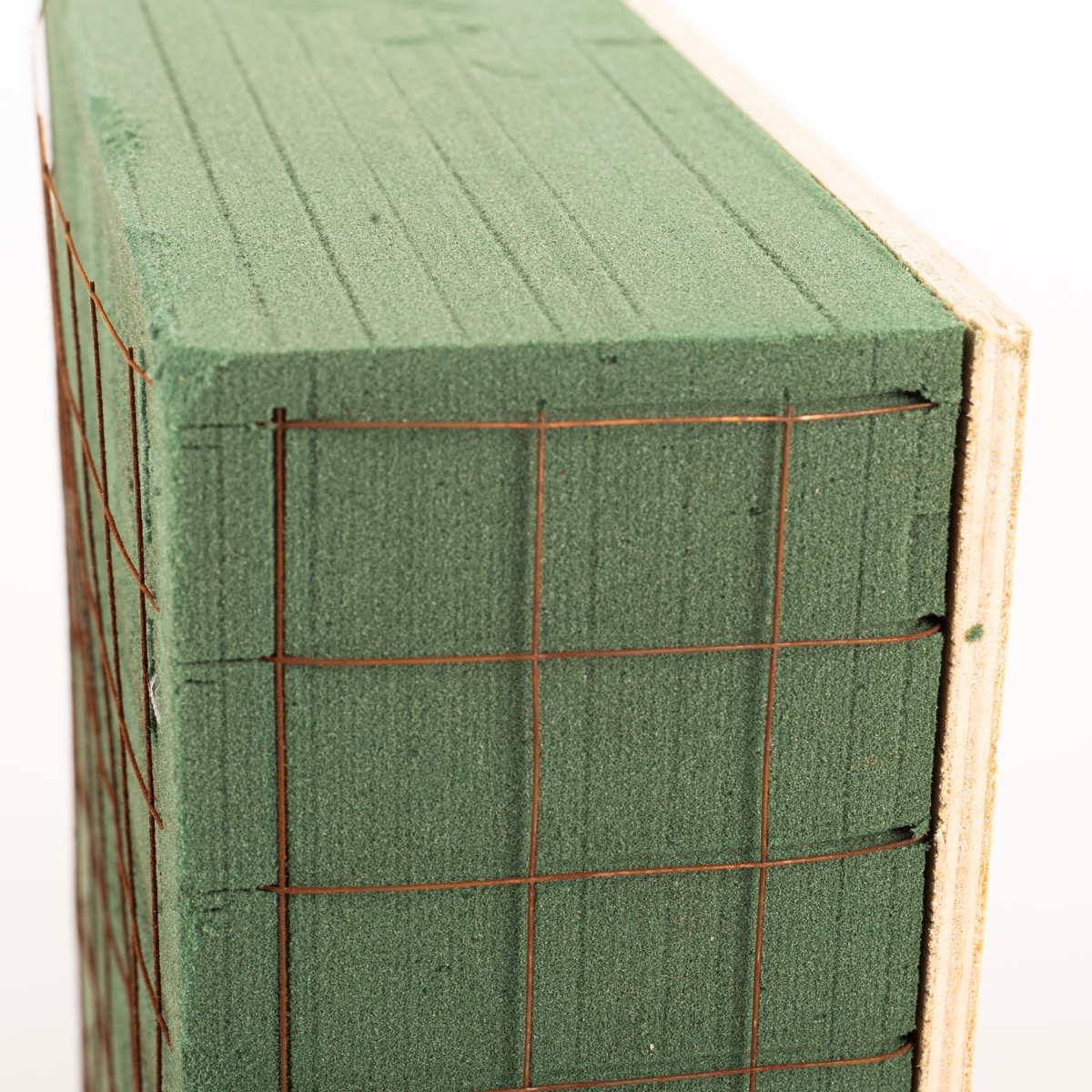 Adorno funerario Ökodur Espuma floral VESDO con rejilla metálica, borde para agarrar, base de madera natural, verde, 23 x 22 x 8,5 cm
