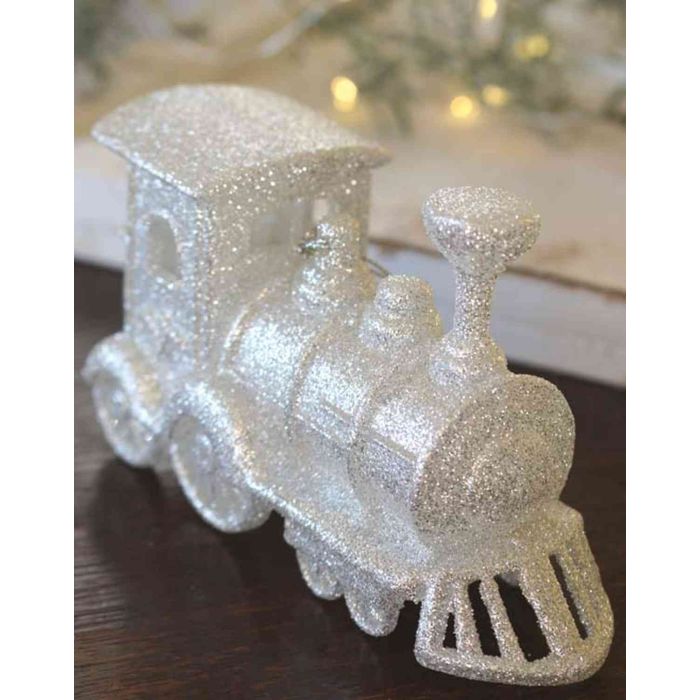 Adorno navideño GEREON, tren, acrílico, colgante, purpurina, blanco-plata, 12x7cm