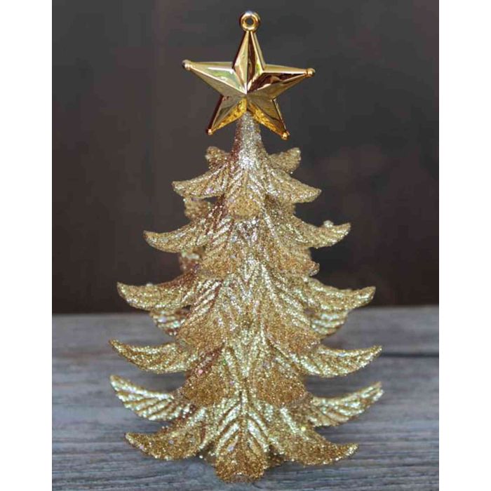 Adorno para el árbol de Navidad RION con estrella, acrílico, purpurina, dorado, 12 cm, Ø 9 cm