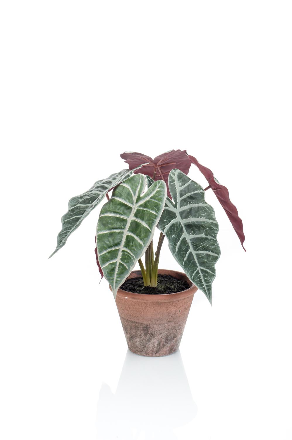 Alocasia Sanderiana artificial GARCIA, maceta de terracota, verde-blanco, 30cm