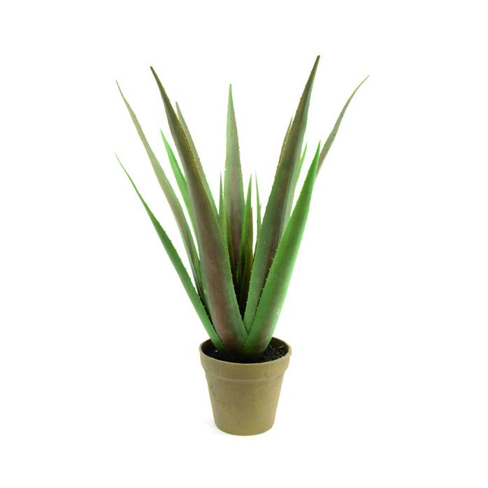 Planta de Aloe vera artificial con una altura de 55 cm y 18 hojas. Este bonito Aloe es un gran elemento decorativo gracias a sus tonos verdes y su apariencia natural.