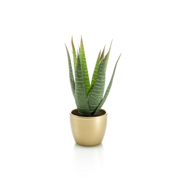 Aloe Variegata artificial MARTINEZ, maceta de cerámica dorada, verde, 25cm, Ø17cm