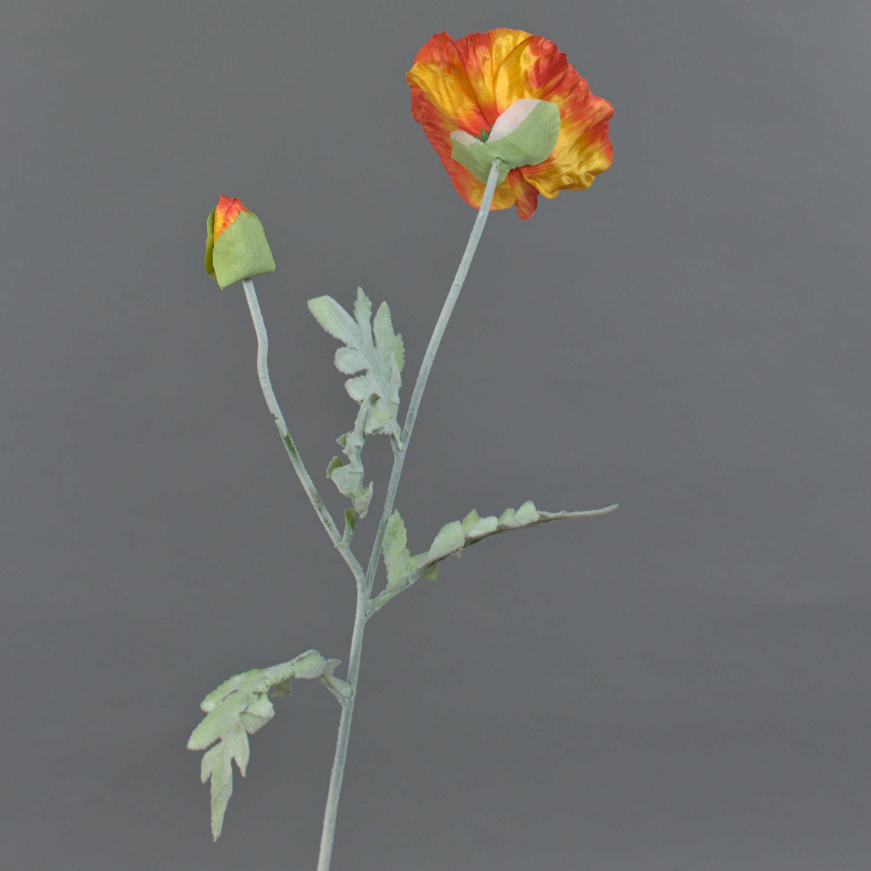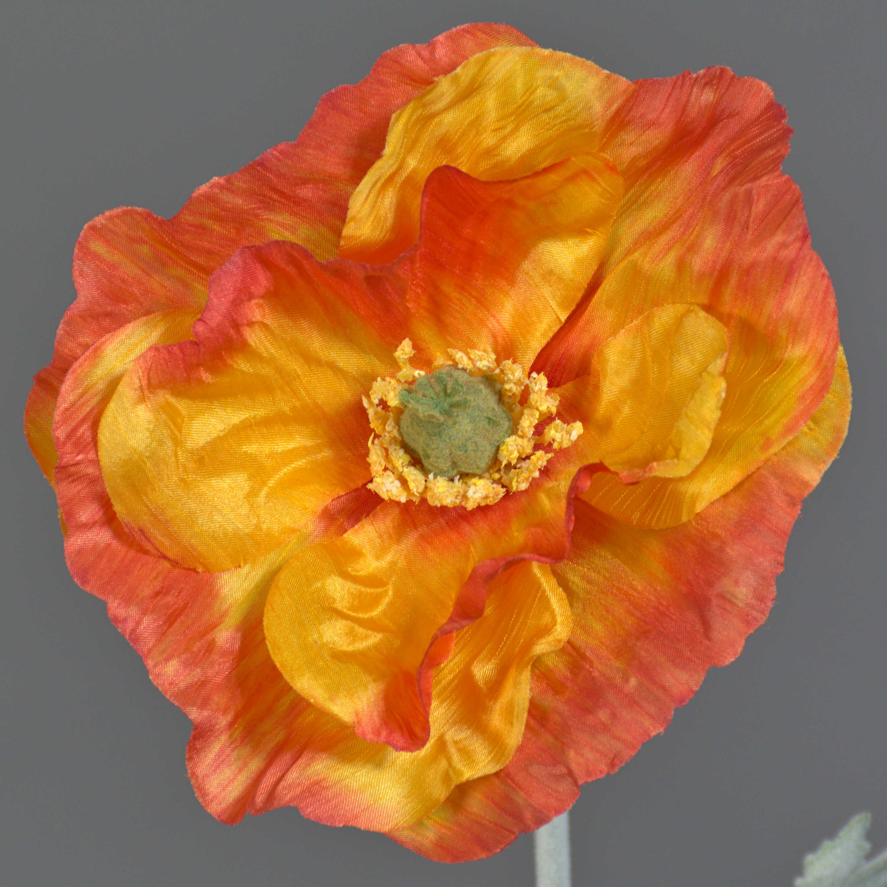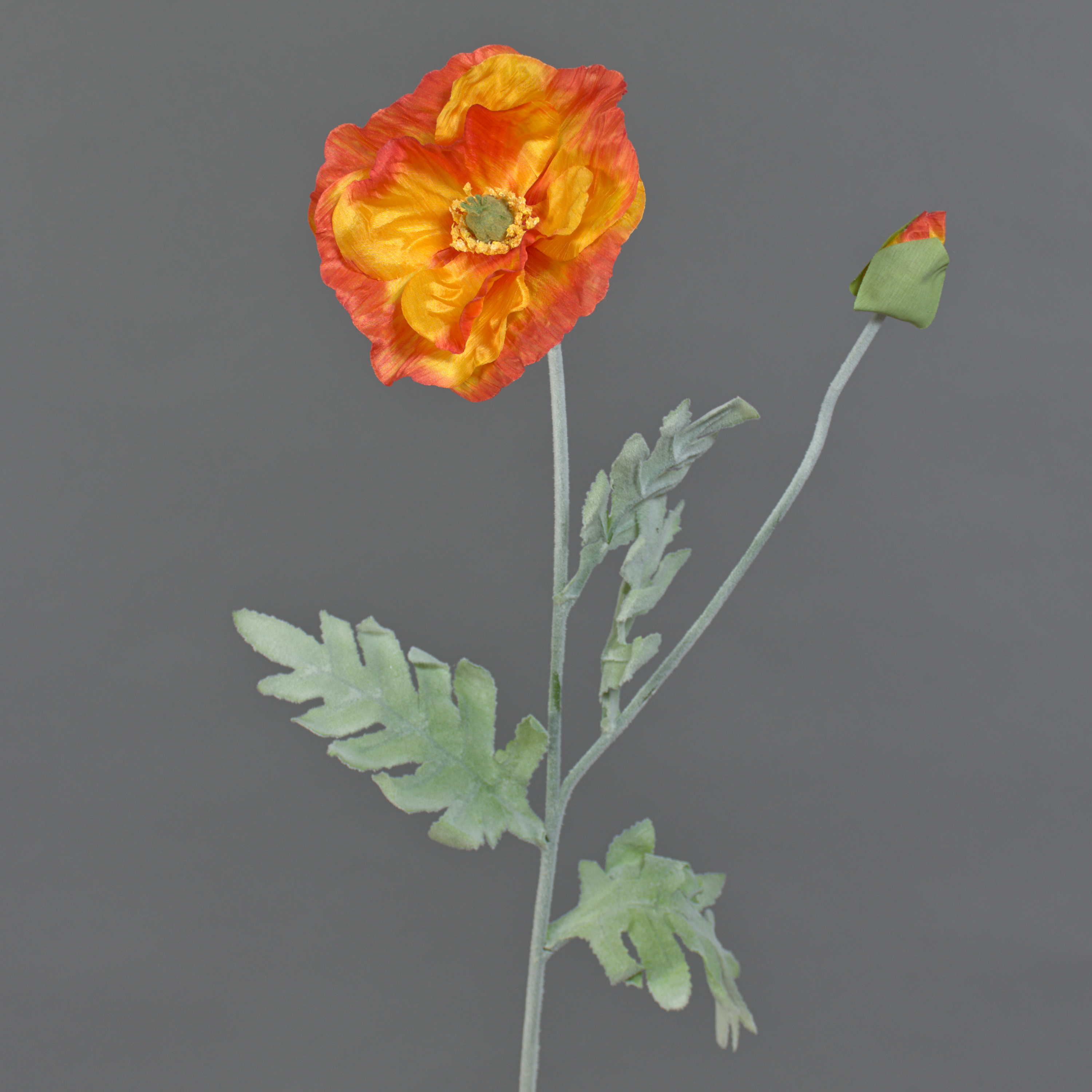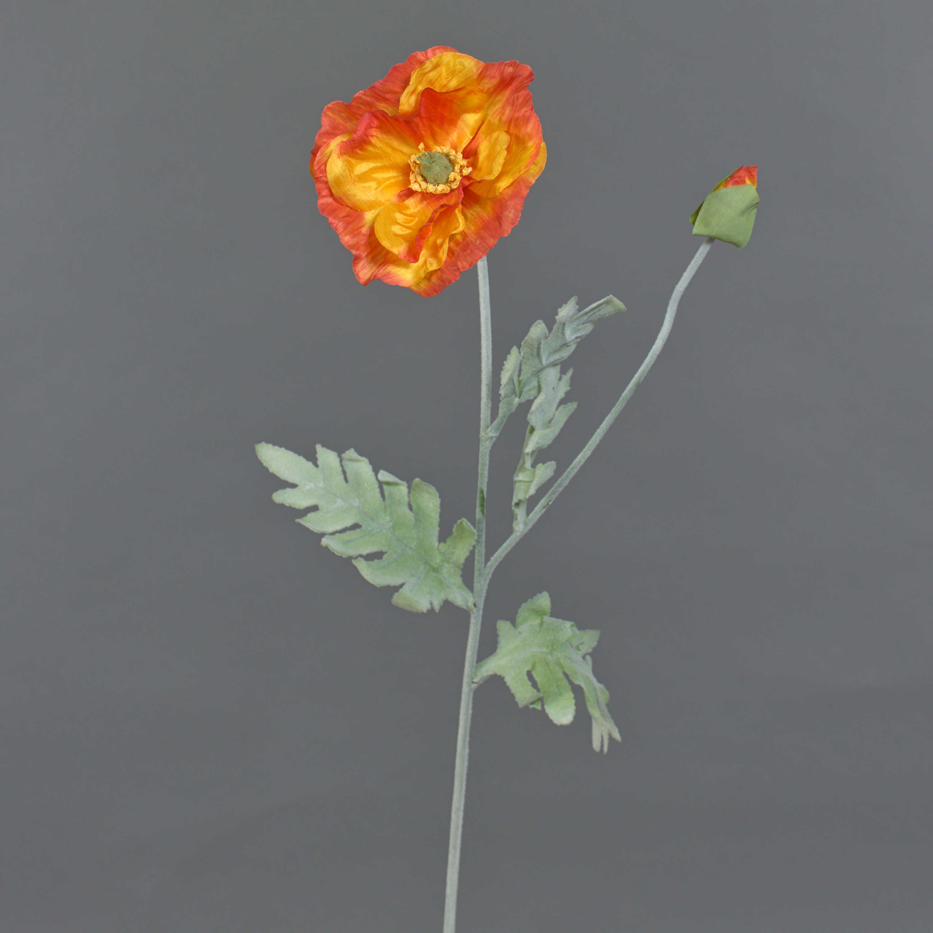 Bonita amapola artificial en color naranja con una longitud total de aproximadamente 70 cm.