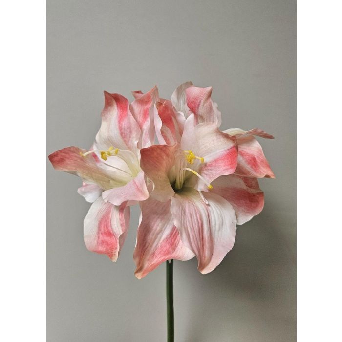 Amaryllis artificial SARNUK, blanco-rosa, 80 cm