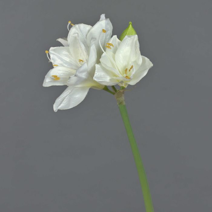 Amaryllis artificial en color blanco con capullo. La flor artificial es de aproximadamente 55 cm de largo y es ideal para por ejemplo en jarrones encima de la cómoda.