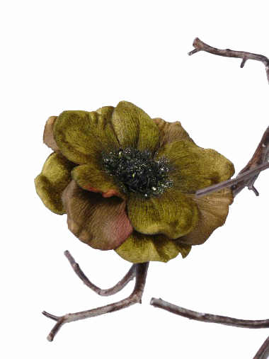 Anémona artificial GORO con clip, verde oliva, Ø11cm