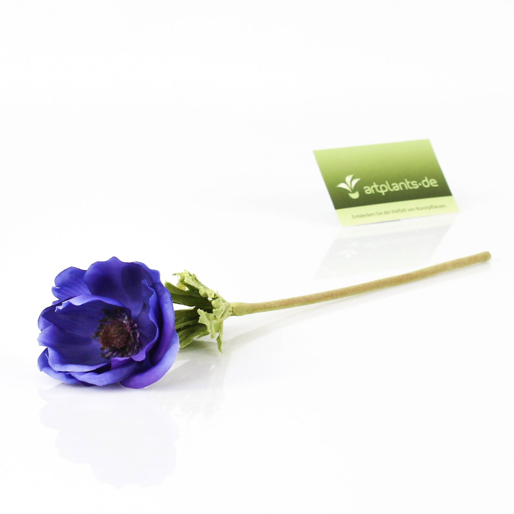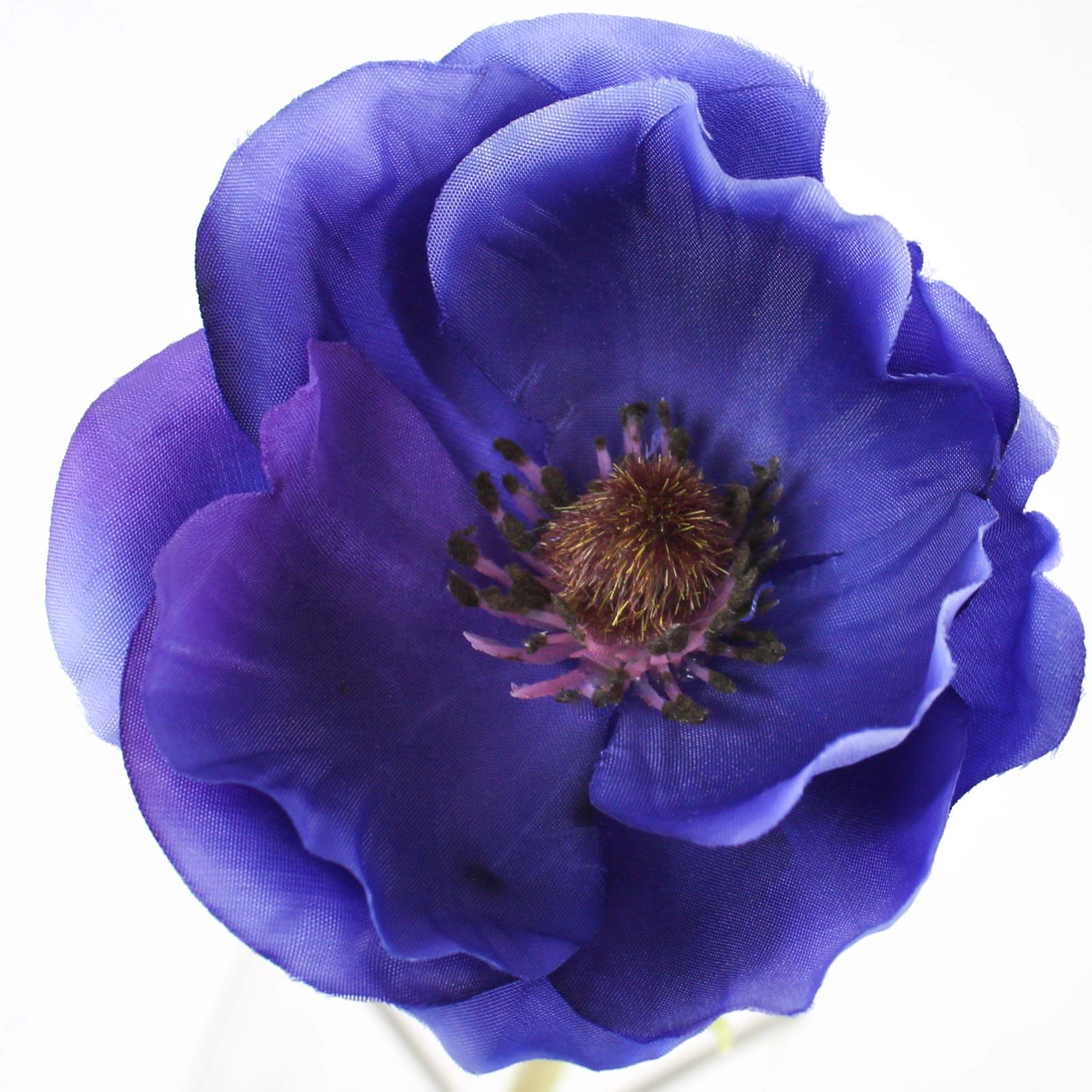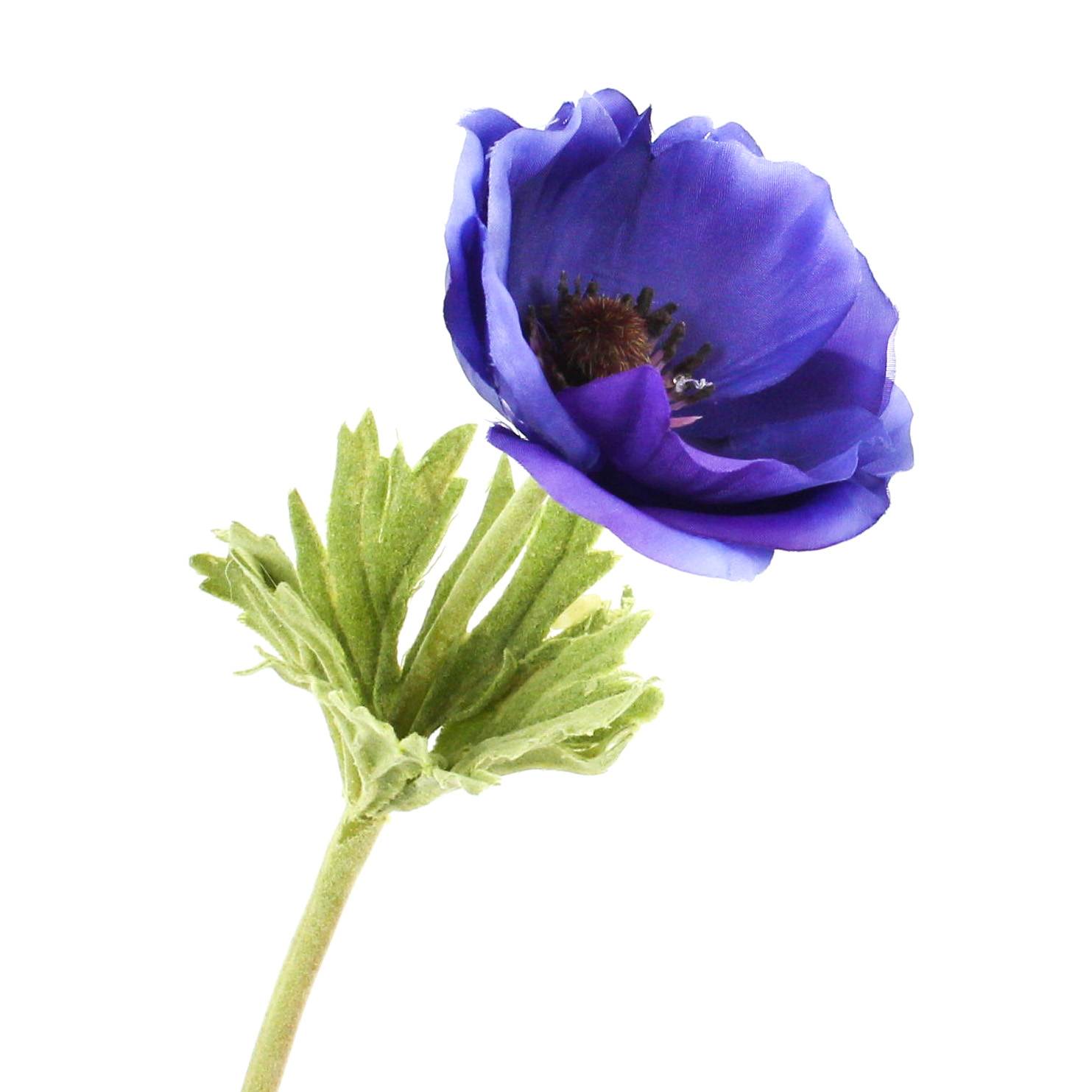 Anémona (Ranunculaceae) decorativa en color azul oscuro. La flor tiene hojas de color verde claro y es de unos 30 cm de largo.