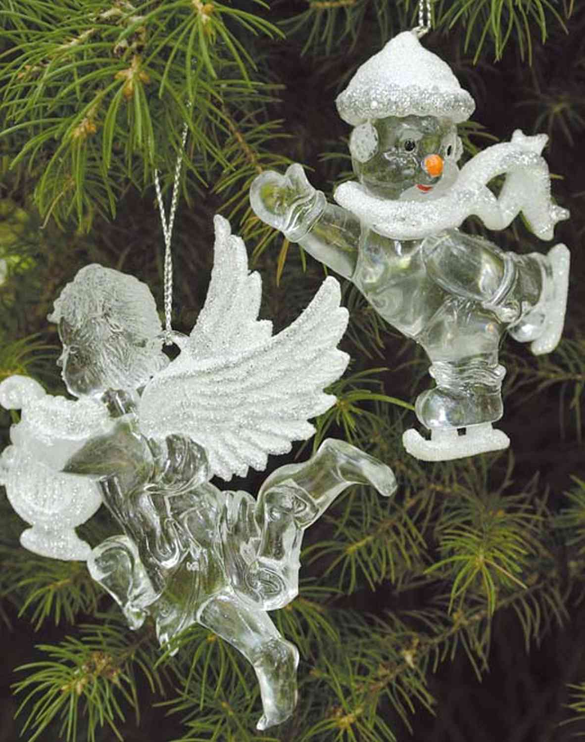 Ángel de Navidad LINDY, 2 unidades, colgante, arpa, lira, purpurina, blanco-plata, 9x10cm