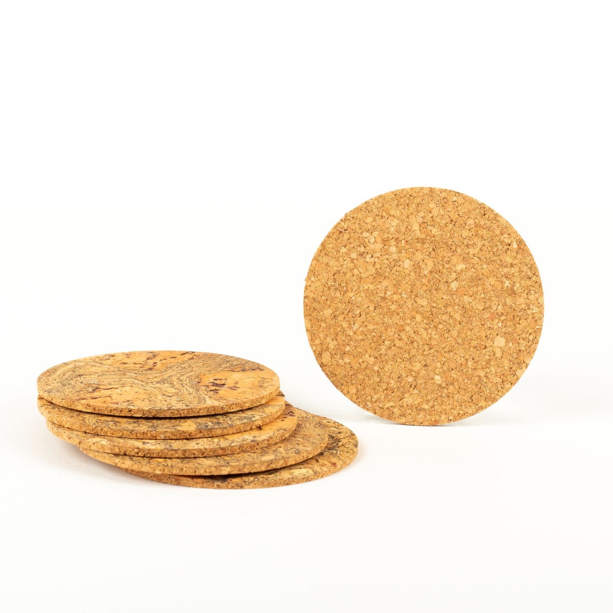 - En color natural, elaborado a partir de corcho prensado. Para formar el corcho prensado se añade un aglutinante a los gránulos de corcho clasificados. El aglutinante, un adhesivo de calidad alimentaria, actúa como un agente natural, asegurando que las partículas de corcho se adhieran entre sí manteniendo sus propiedades únicas.