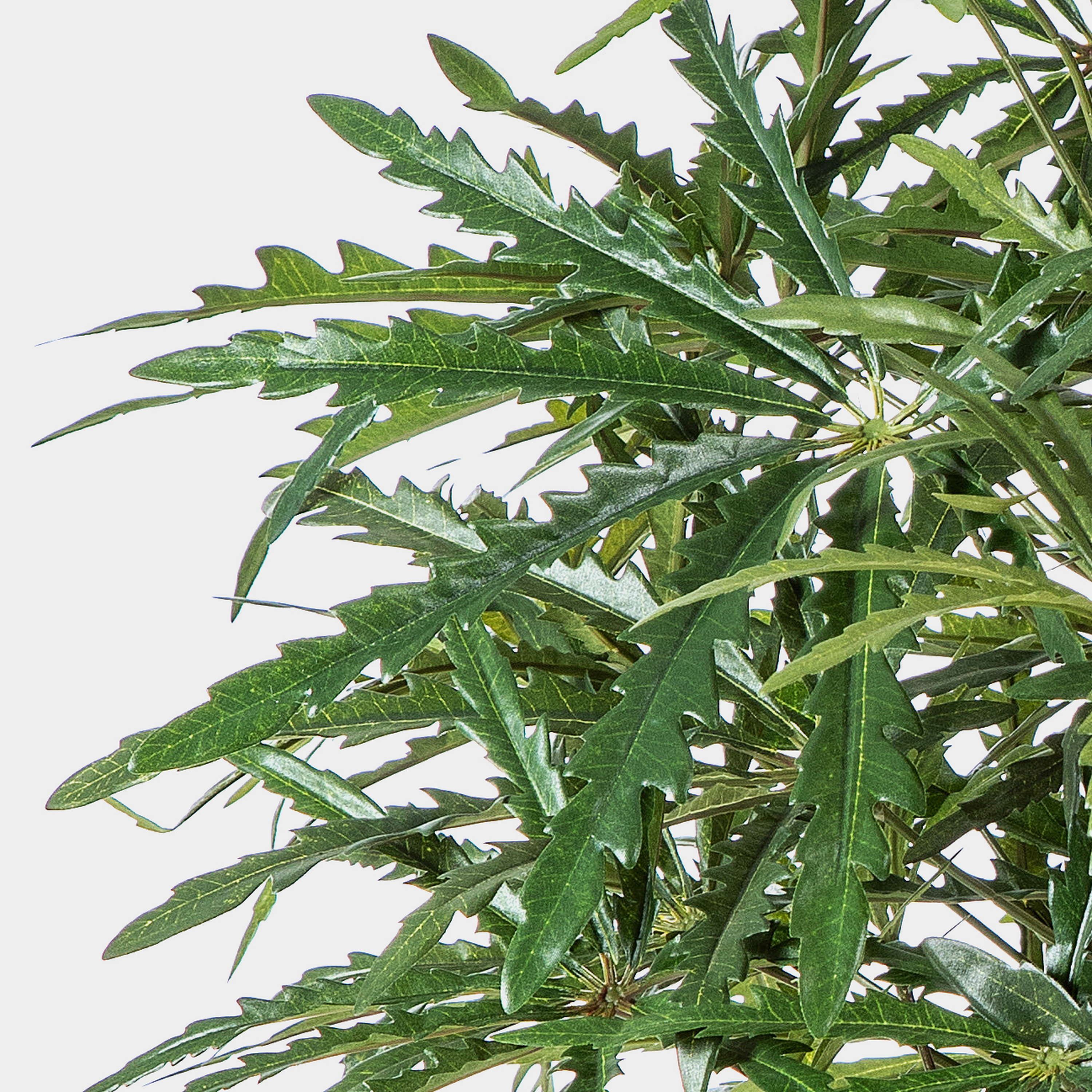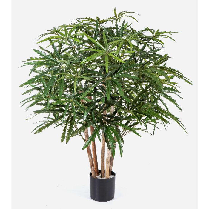 Planta falsa de aralia MAKASIM de color verde. Ideal en una maceta de su elección, por ejemplo en el salón, comedor, etc.