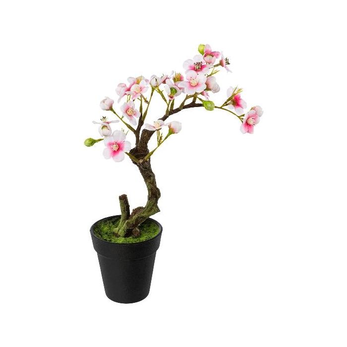 Árbol artificial bonsái de almendro OYOS en maceta decorativa, con flores, rosa, 26 cm