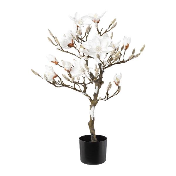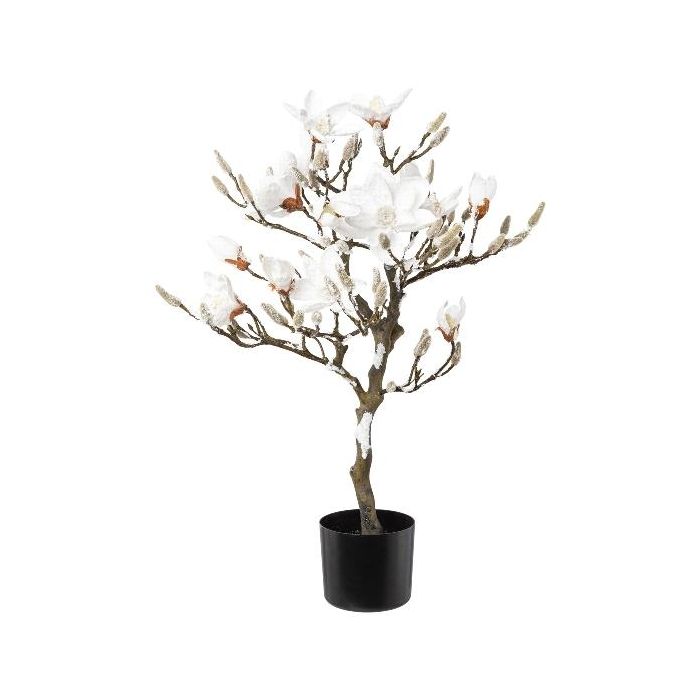 Árbol artificial de magnolia DOLS, tronco artificial, con flores, nevado, 85 cm