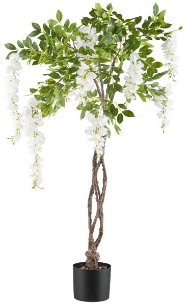Árbol artificial glicinia SINKE con flores, tronco artificial trenzado, blanco, 115 cm