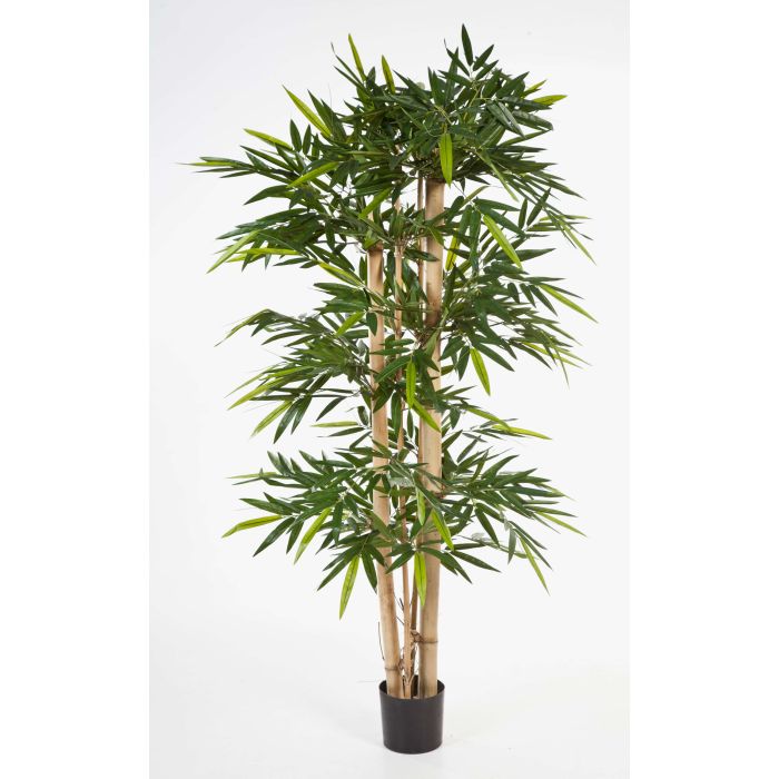 El bambú artificial KISHO posee dos gruesos troncos reales junto con dos cañas más finas, lo que le aporta un aspecto original. Las hojas del árbol de cerca de 300 cm poseen una coloración y forma de apariencia natural.