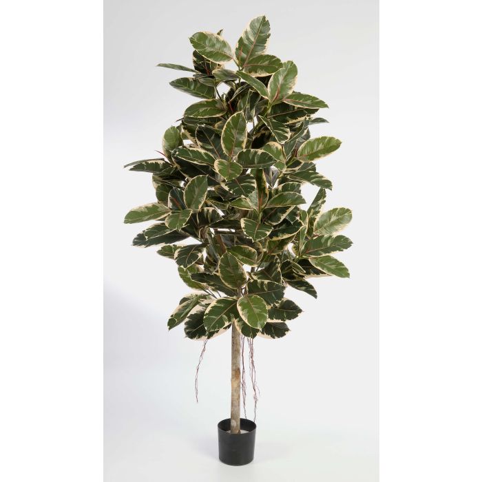 Árbol de caucho artificial DEVI, tronco natural, verde-blanco, 140cm