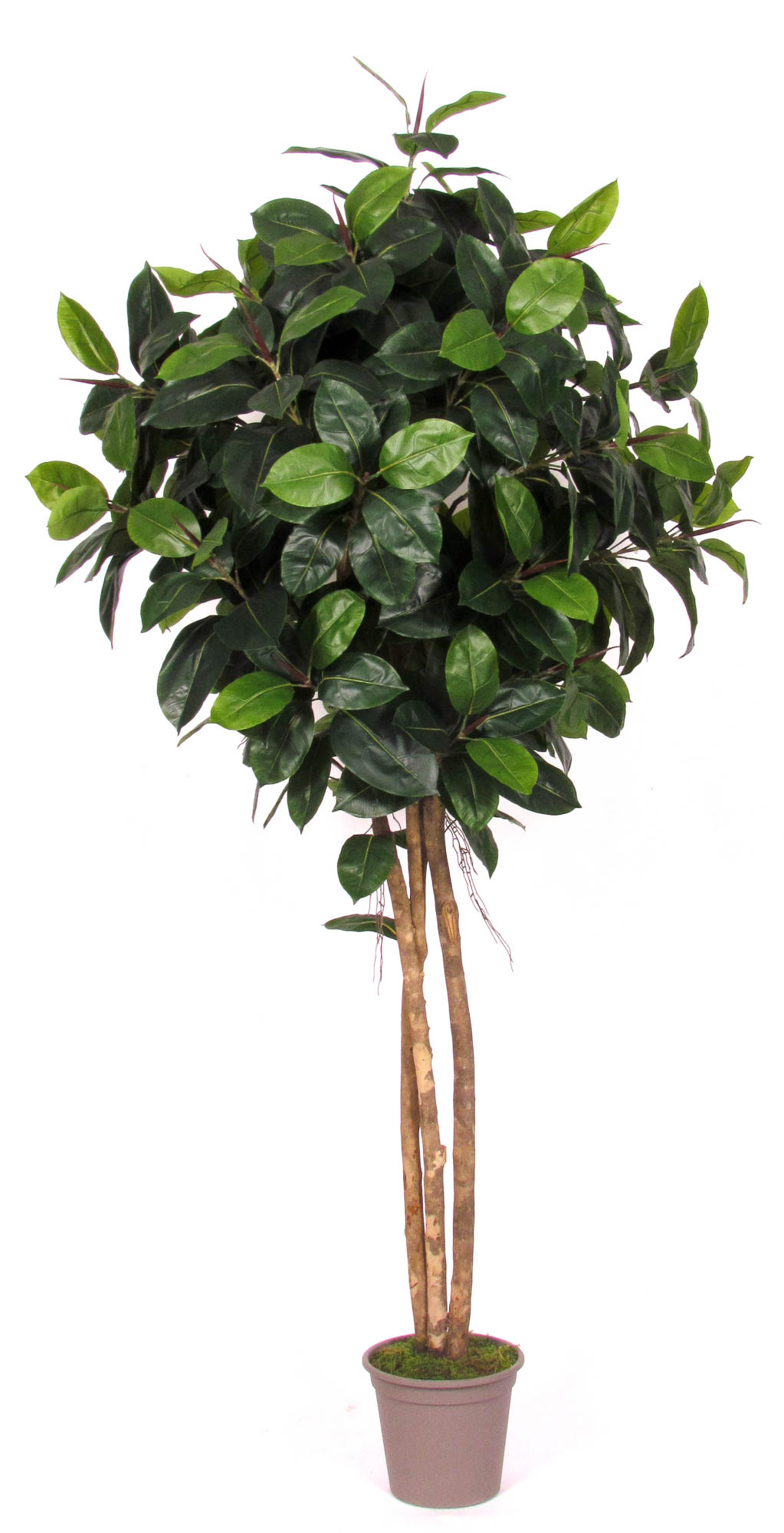 Árbol de caucho artificial LENELOTTE, troncos naturales, verde, 225 cm - Fabricado en Italia