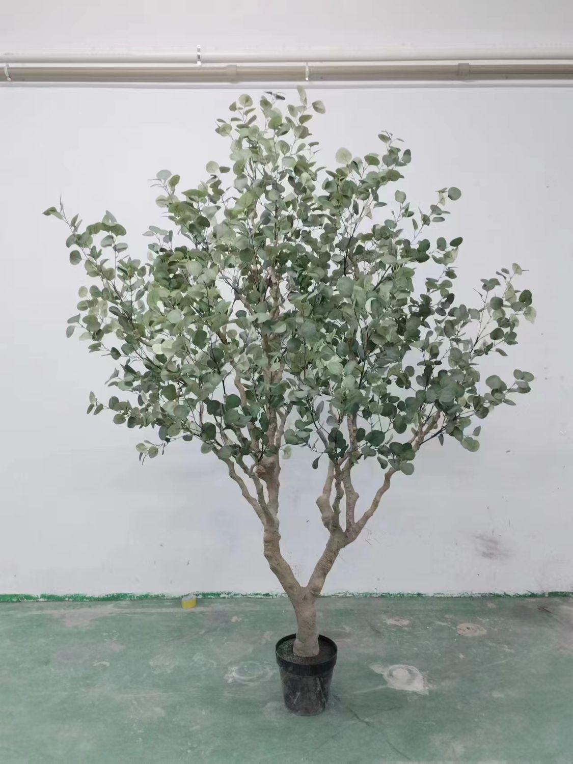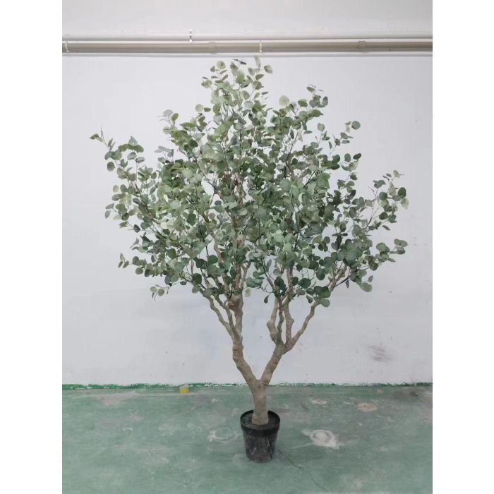 Árbol de eucalipto artificial KEYLAM, tronco artificial, maceta decorativa, verde-gris, 250 cm