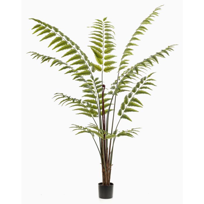 El helecho falso ANKOCA en color verde está fijado a una maceta y tiene una altura de aproximadamente 180 cm.