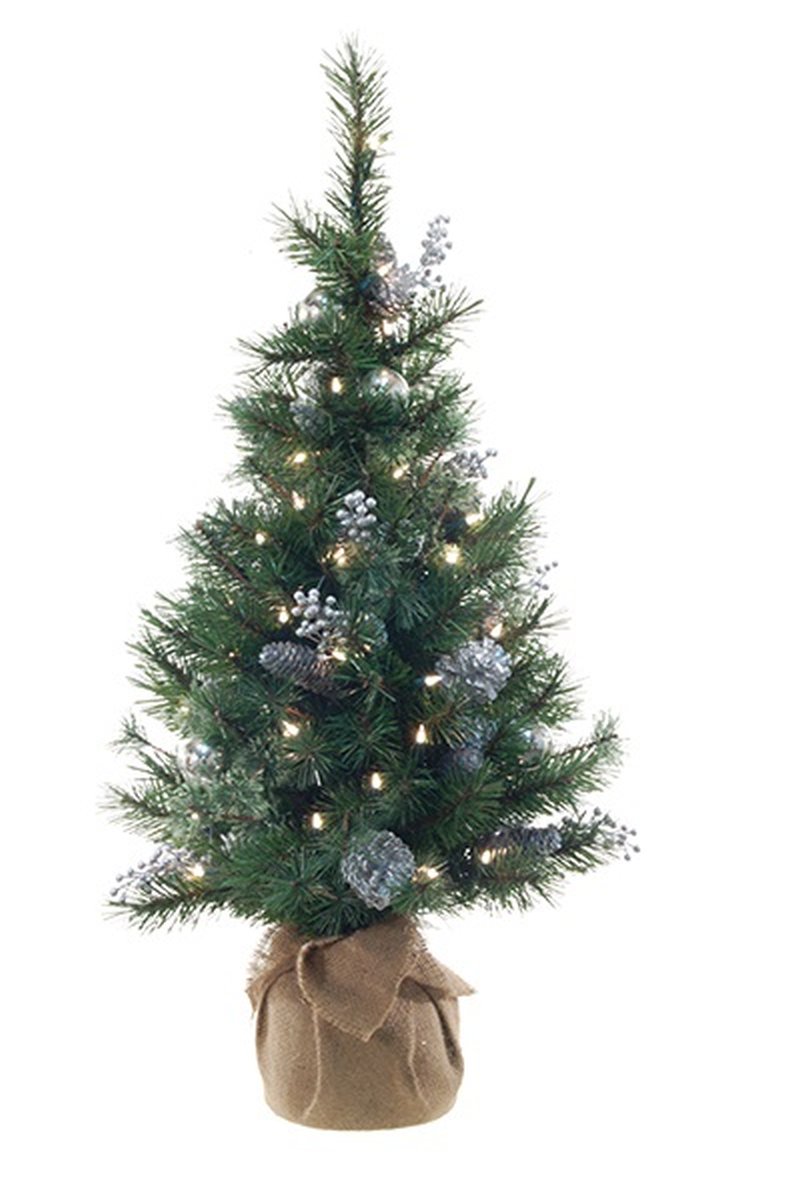 Árbol de Navidad artificial CEDO, bolsa de yute, piñas, bayas, LED, verde-plata, 90cm