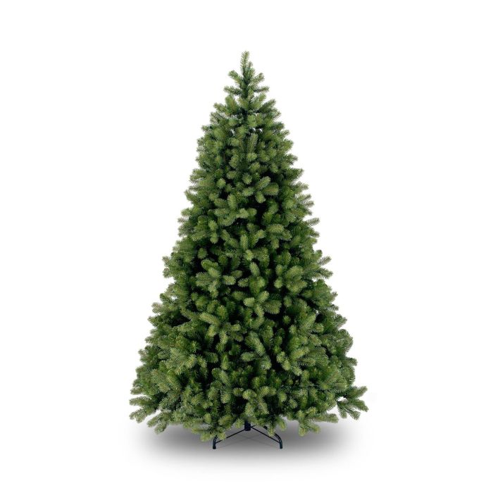 Árbol de Navidad de plástico/Abeto navideño LONDON de color verde con soporte de metal y ramas de aguja de PE/PVC. El abeto artificial de Navidad posee una altura de aprox. 230 cm, un diámetro de aprox. 150 cm y es ideal como decoración para el salón de casa o para restaurantes, escaparates, puestos de feria, etc.