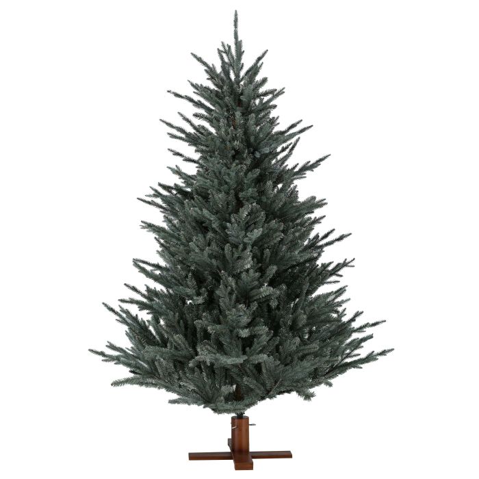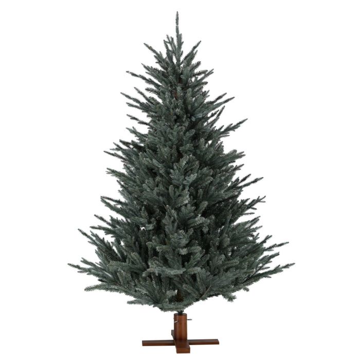 Abeto de plástico RIVERSIDE SPEED de color azul con soporte de madera y elaborado con agujas de PE/PVC. El árbol de Navidad falso de aprox. 210 cm de altura posee un diámetro de aprox. 140 cm y es ideal como decoración para el salón de casa o para restaurantes, escaparates, stands de ferias, etc.