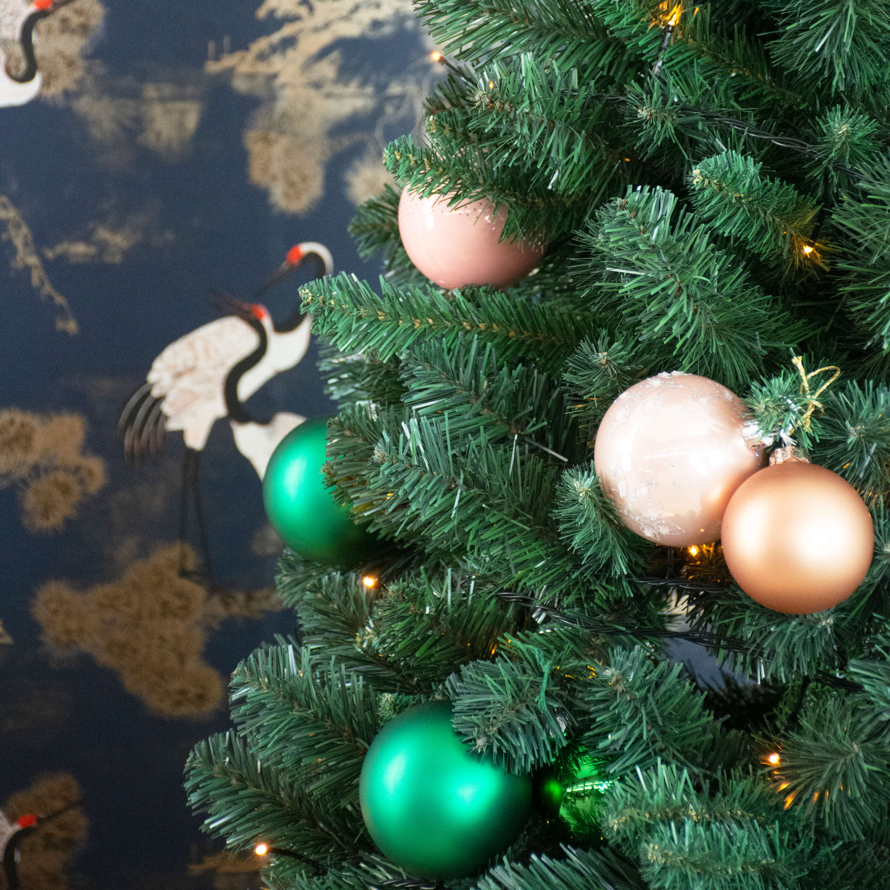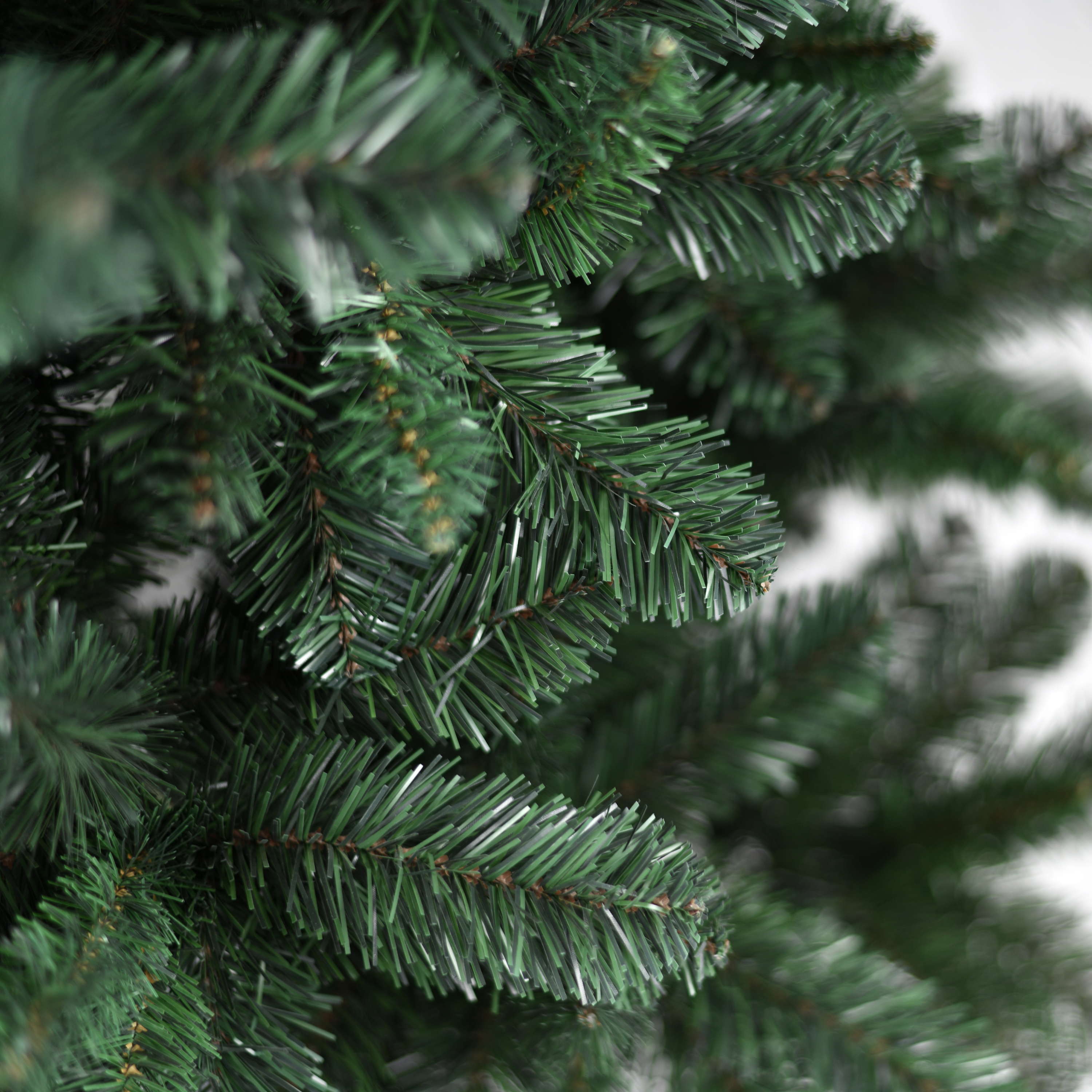 - Con cerca de 1250 ramas en color verde oscuro elaboradas con material de PVC de alta calidad, fijación estable de las ramas sobre las bisagras plegables, simple montaje gracias a los agujeros marcados en el tronco; los ápices poseen una longitud aproximada de 4 cm y dotan al árbol de un aspecto muy frondoso