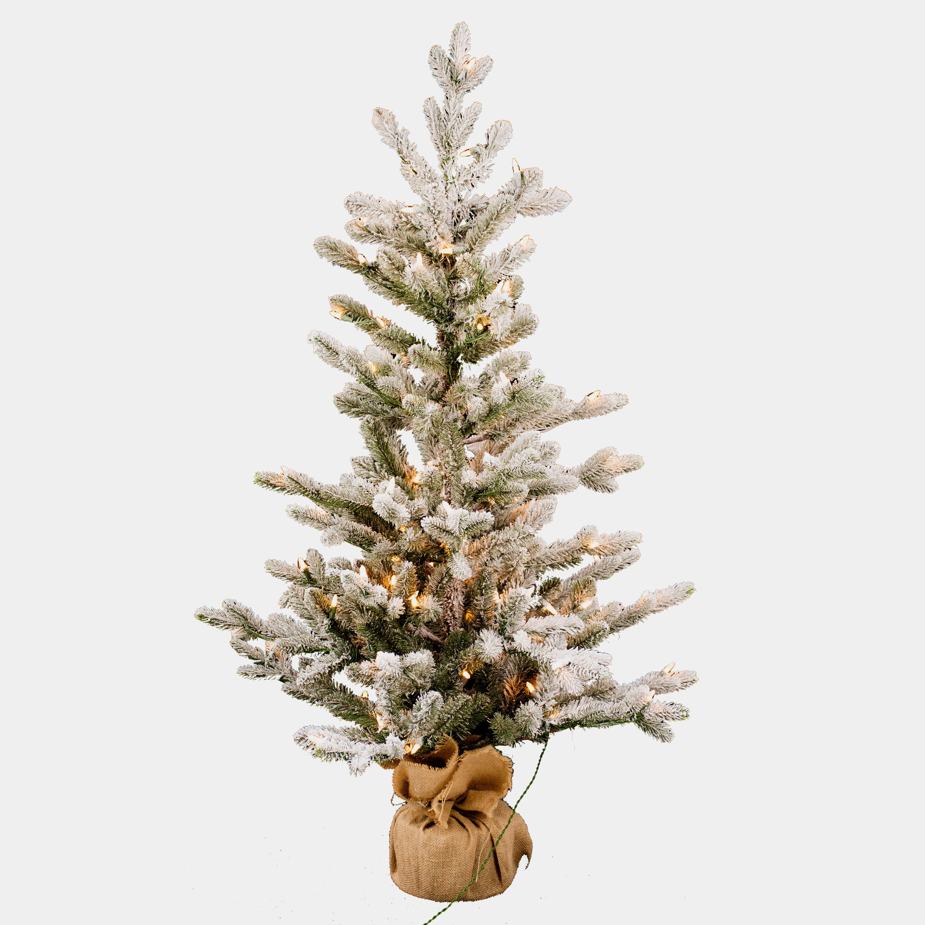 Árbol Navidad artificial ORLANDO, saco yute, LEDs, nevado, 120cm, Ø70cm