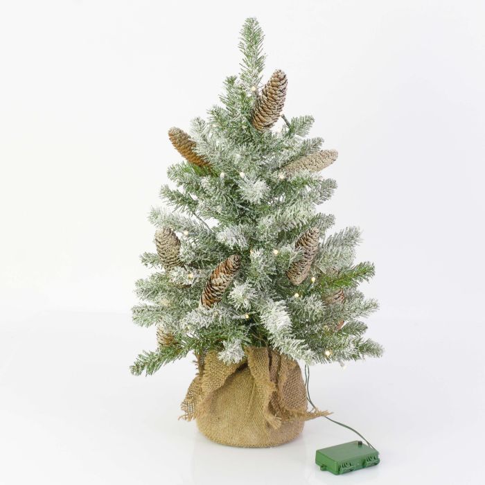 Árbol Navidad artificial WIEN, piñas, saco yute, LED, nevado, 60cm, Ø40cm
