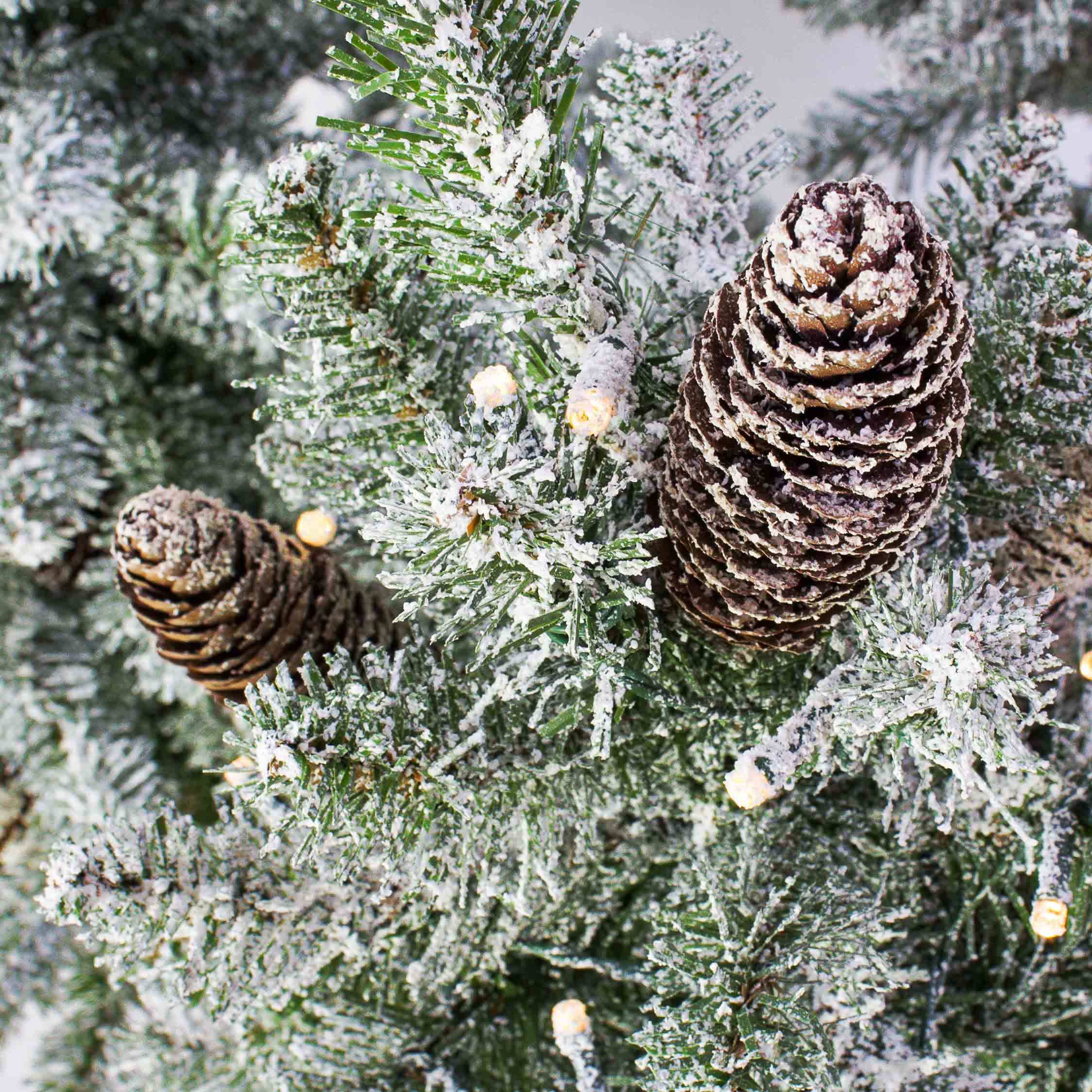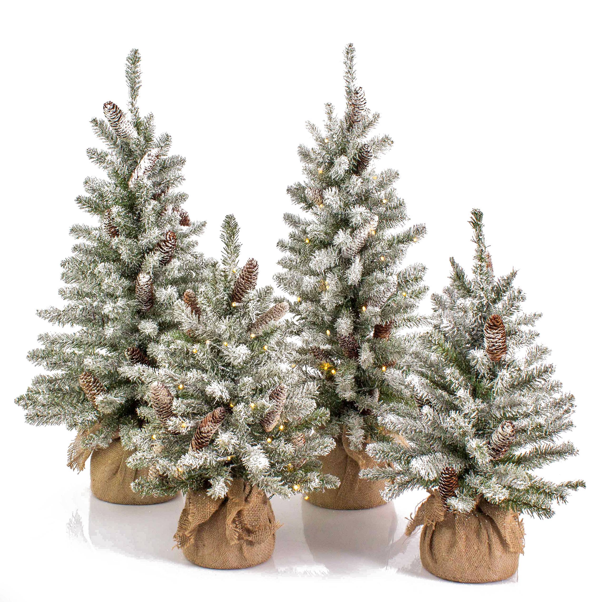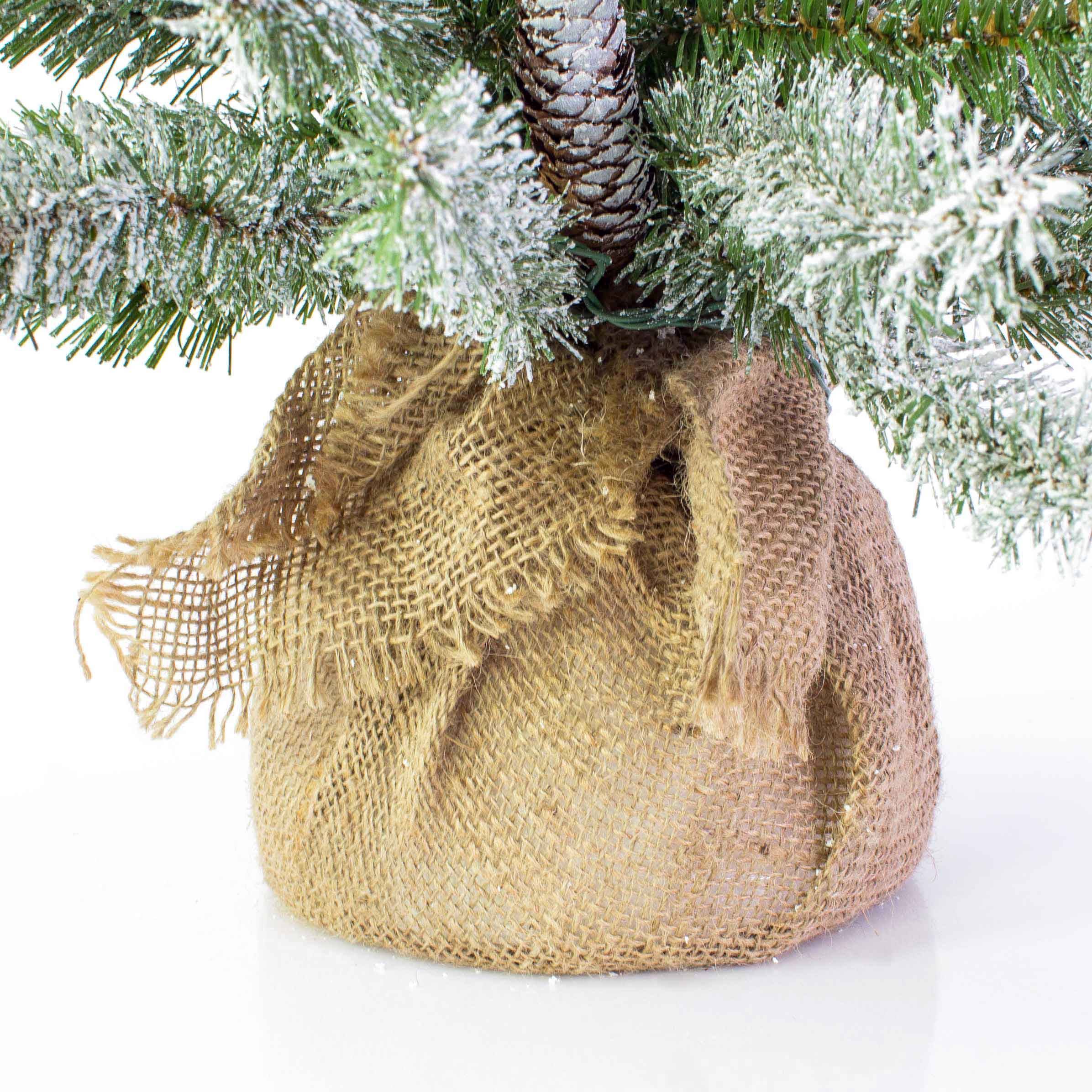 Árbol Navidad artificial WIEN, piñas, saco yute, LED, nevado, 90cm, Ø50cm