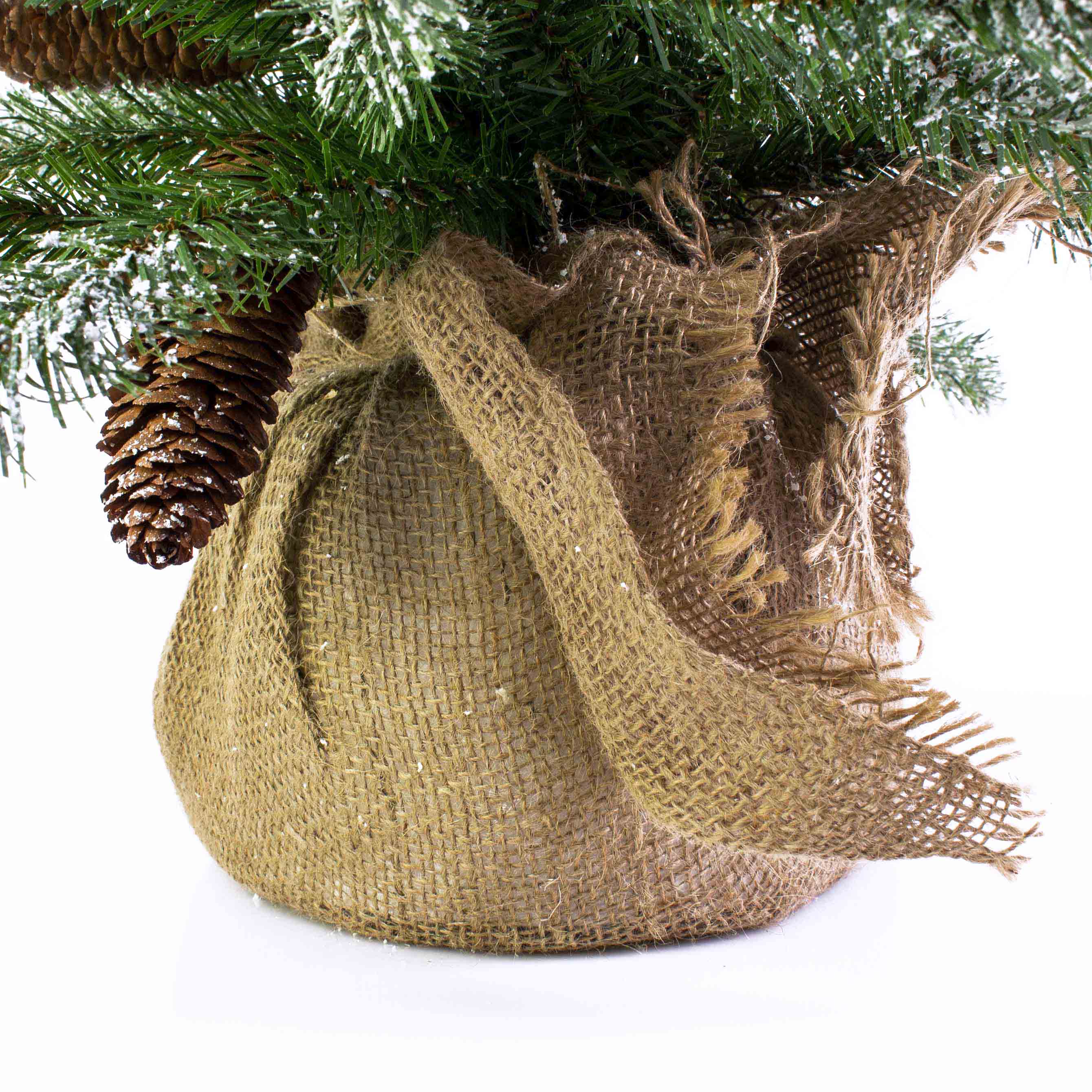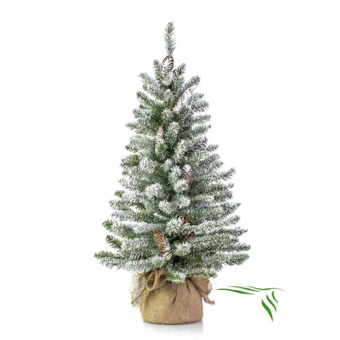 Árbol Navidad artificial WIEN, piñas, saco yute, nevado, 90cm, Ø50cm