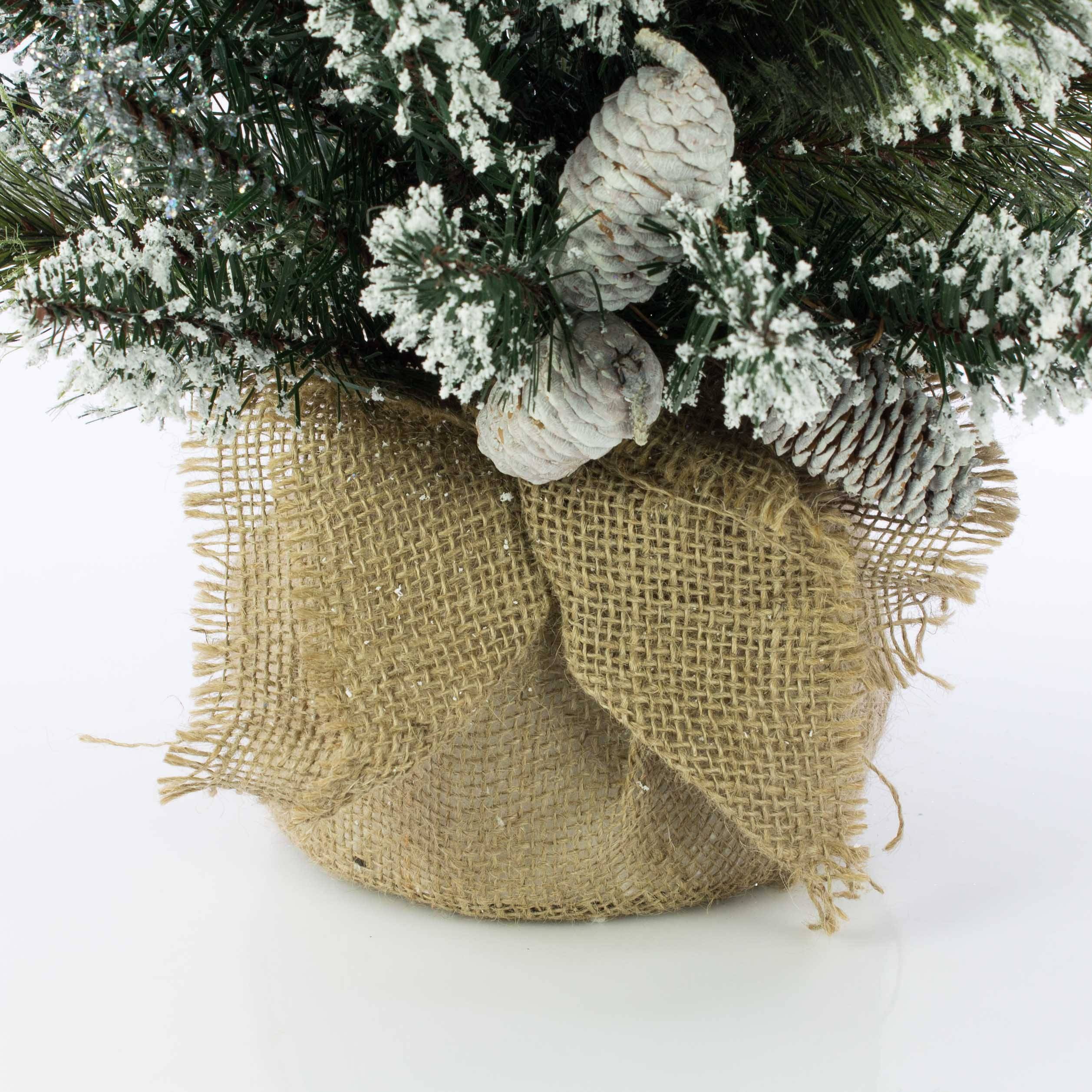 Árbol Navidad sintético RIGA, piñas, saco yute, blanco, 90cm, Ø50cm