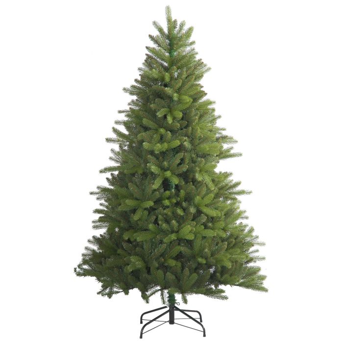 Abeto de plástico/Abeto sintético GENF de color verde con soporte de metal y ramas de aguja de PE/PVC. El abeto artificial de Navidad posee una altura de aprox. 210 cm, un diámetro de aprox. 120 cm y es ideal como decoración para el salón de casa o para restaurantes, escaparates, puestos de feria, etc.