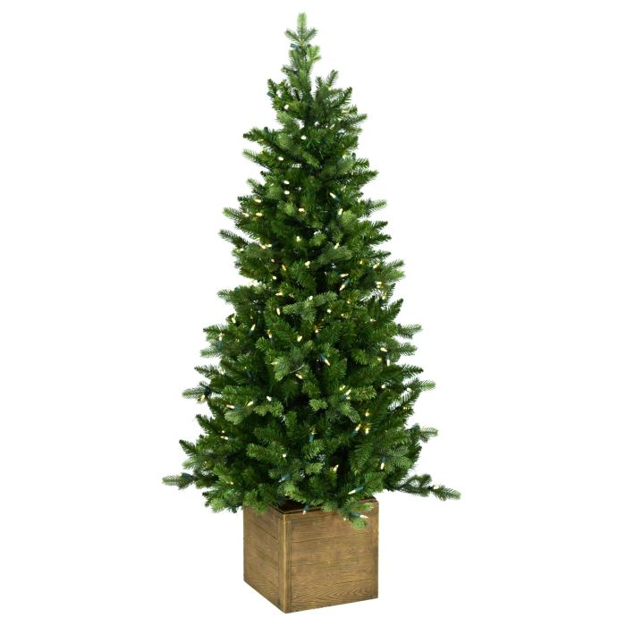 Arbolito Navidad artificial OMAHA SPEED DELUXE, maceta madera, luces, 135cm, Ø65cm