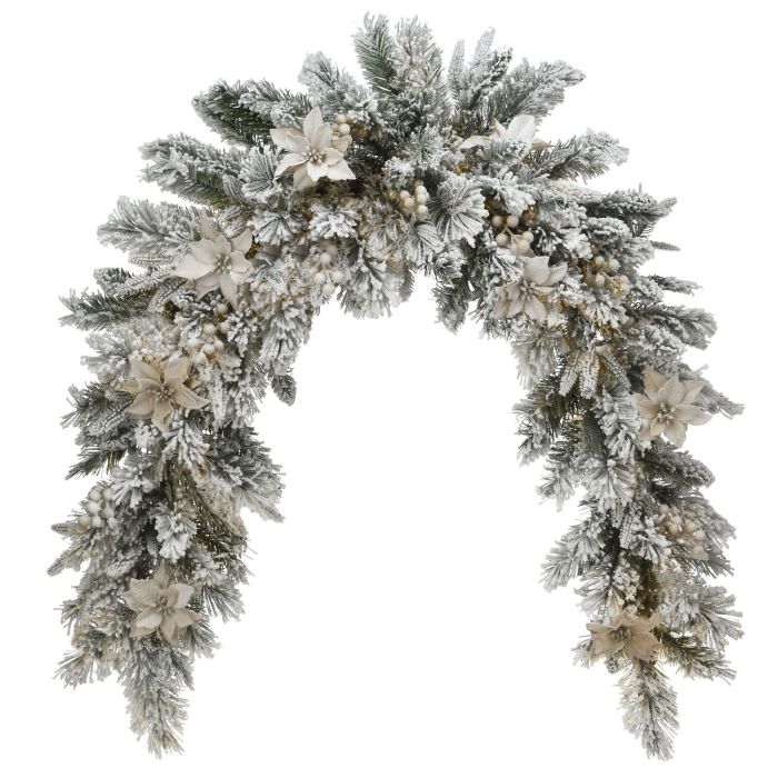 - Arco de puerta de abeto falso con aspecto helado con amarilis y bayas para su decoración navideña