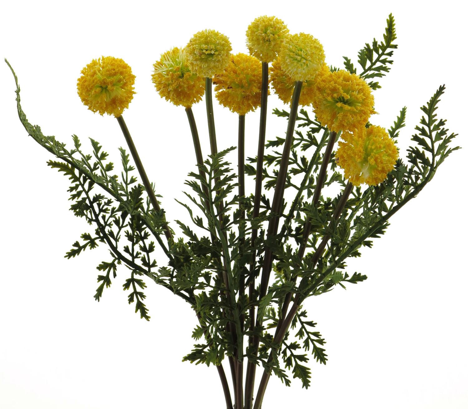 Arreglo artificial de Craspedia MANXIA con helecho, varilla de ajuste, amarillo, 40cm