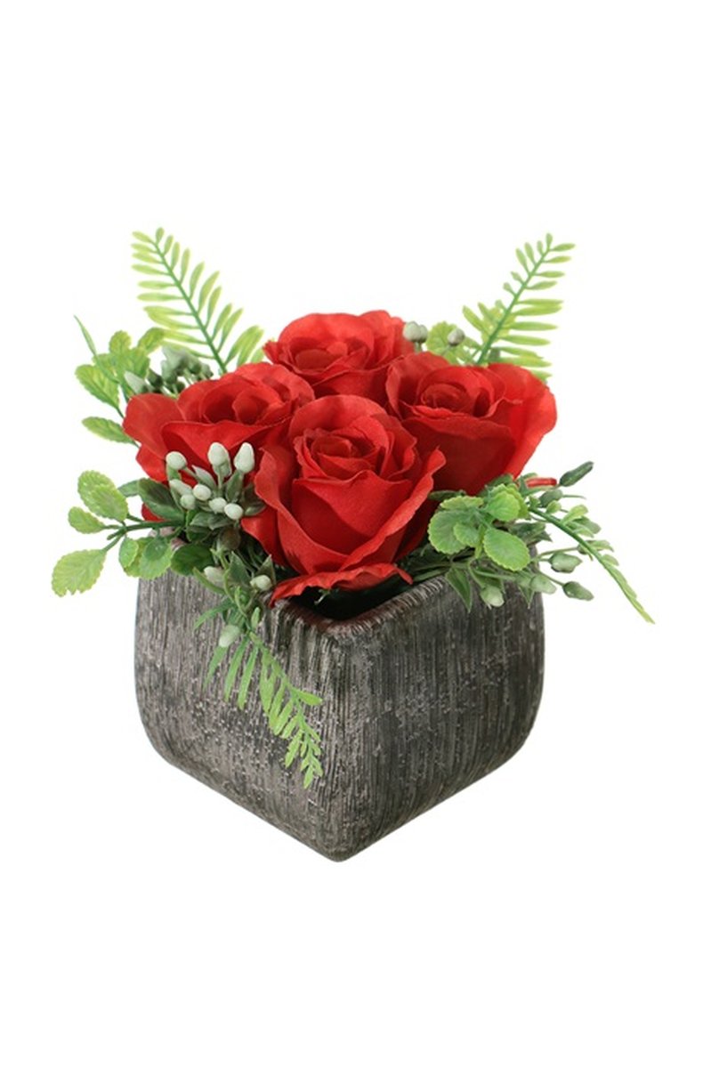Arreglo de flores artificiales de rosa, hierba de San Juan ABUD, maceta decorativa, roja, 17cm, Ø18cm